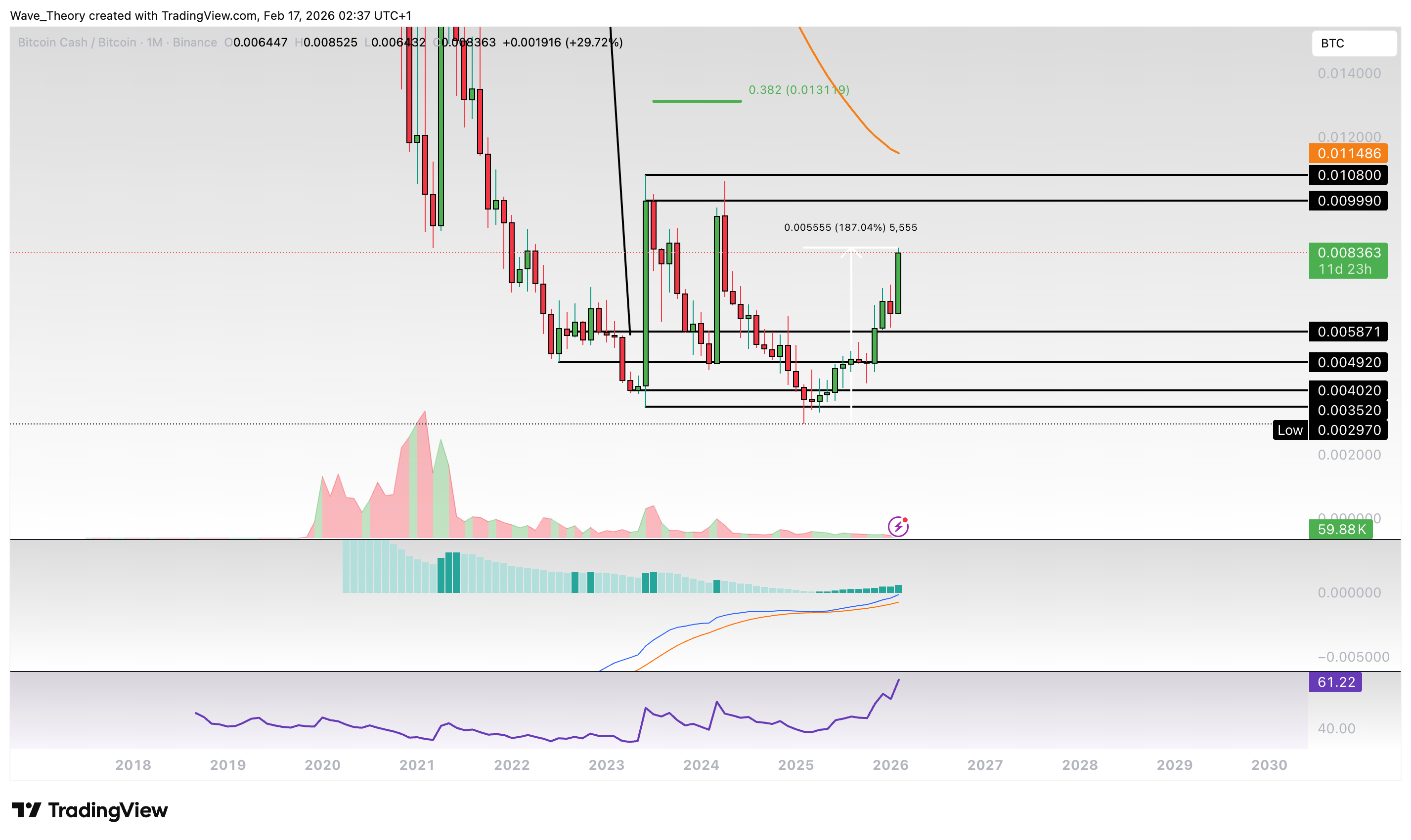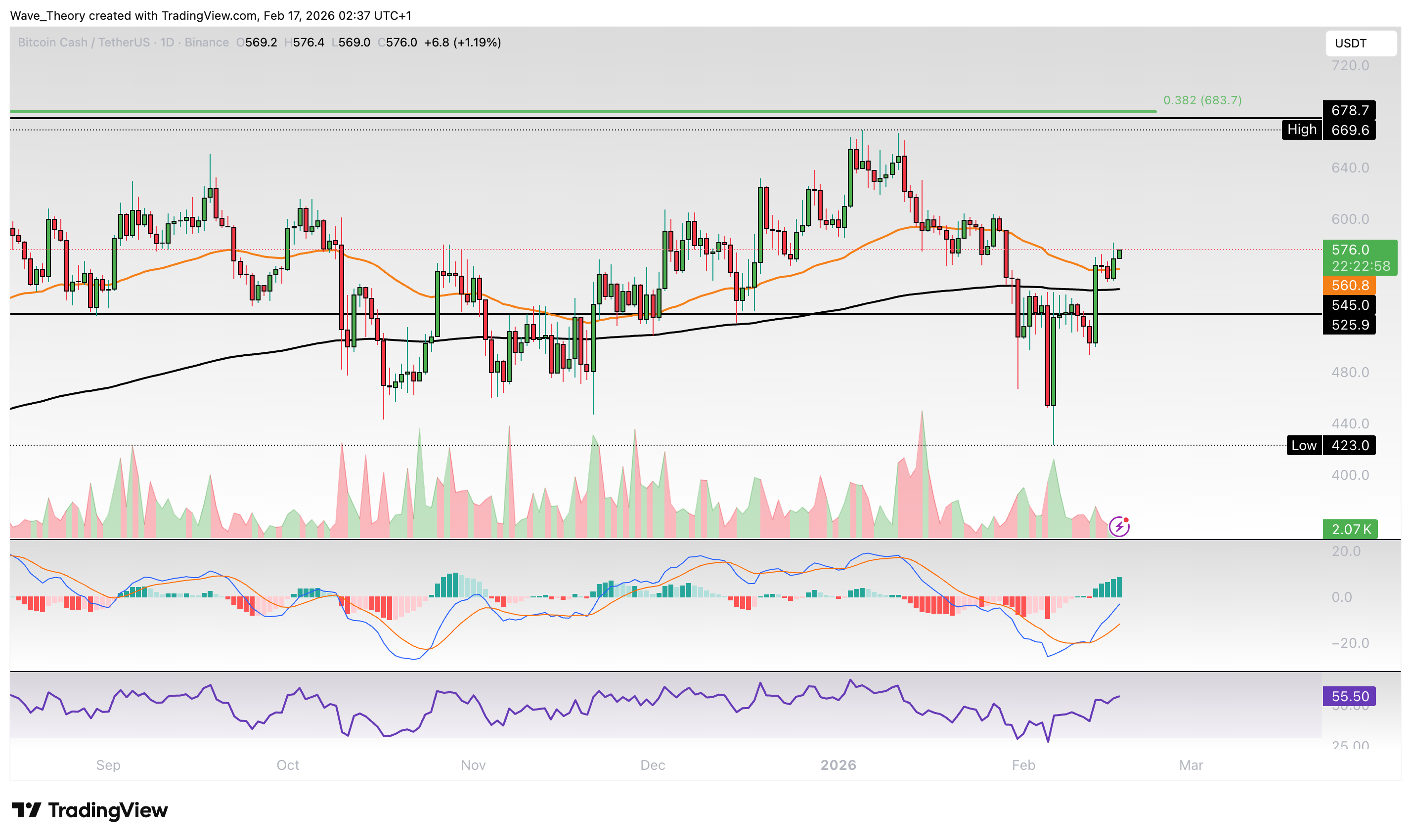 Bitcoin-Cash-Prognose für Mittwoch, 18. Februar 2026: Der Bitcoin Cash Kurs steigt in diesem Monat stark an. Insgesamt ist der Kurs während des Krypto-Crashs kaum gefallen.
