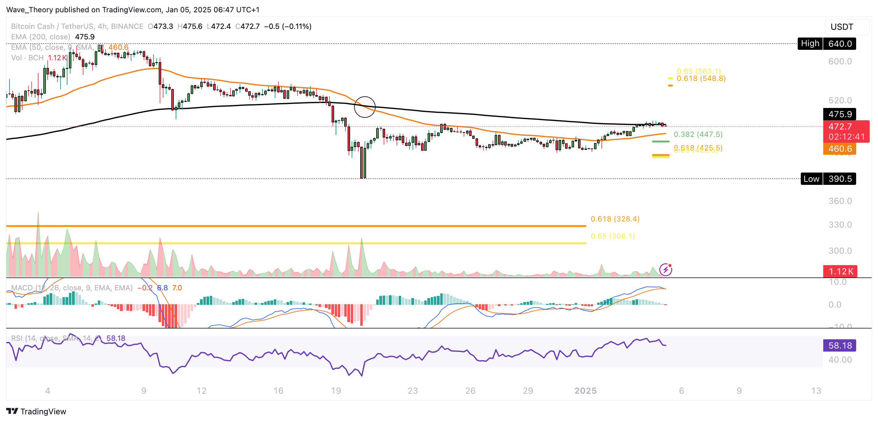 Im 4H-Chart von Bitcoin Cash hat sich ein Death Cross geformt