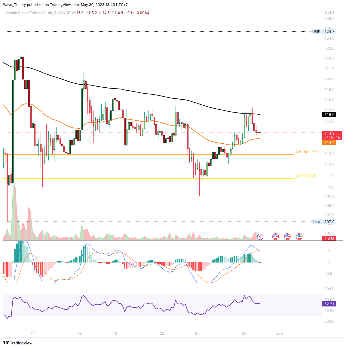 SponsoredMit einem Bruch des 200-4H-EMA Widerstands könnte BCH erneut den Versuch unternehmen, den Golden Ratio Widerstand bei rund 136 USD zu brechen. Andernfalls könnte BCH womöglich die Golden Ratio Unterstützung bei rund 112 USD bärisch durchbrechen, um eine Etage tiefer zu fallen.
