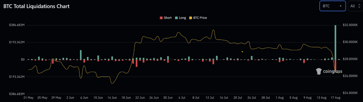 Laut den Daten von Coinglass erreichen die Liquidationen der BTC-Long-Positionen bemerkenswerte 386,68 Millionen US-Dollar. Dies verdeutlicht, dass der Markt von einem starken Verkaufsdruck betroffen ist, der die Preise in Mitleidenschaft zog, während der SpaceX-Verkauf nur ein Teil des größeren Marktgeschehens zu sein scheint.