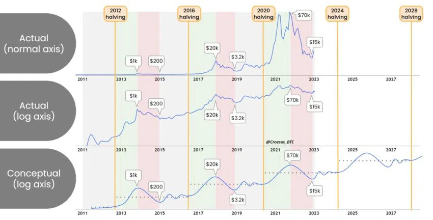 Seiner Meinung nach verpassen die meisten Menschen das Makrotief, weil sie vom Schock des Abwärtstrends gelähmt sind und nicht im richtigen Moment handeln. Ihm zufolge sei dieser Moment im November 2022 gewesen, als die Kryptomärkte auf ein Vierjahrestief stürzten.