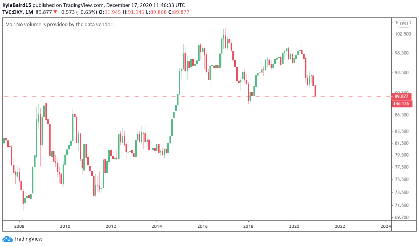 Der USD-Index ist zum ersten Mal seit 2,5 Jahre unter 90 gefallen. Im April 2018 fand der USD-Index damals Support.