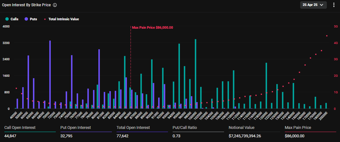 Die Daten zeigen auch, dass der maximale Schmerzpunkt für diese auslaufenden Optionen bei 86.000 USD liegt. Im Krypto-Optionenhandel ist der maximale Schmerzpunkt der Kurs, bei dem die meisten Inhaber finanzielle Verluste erleiden.