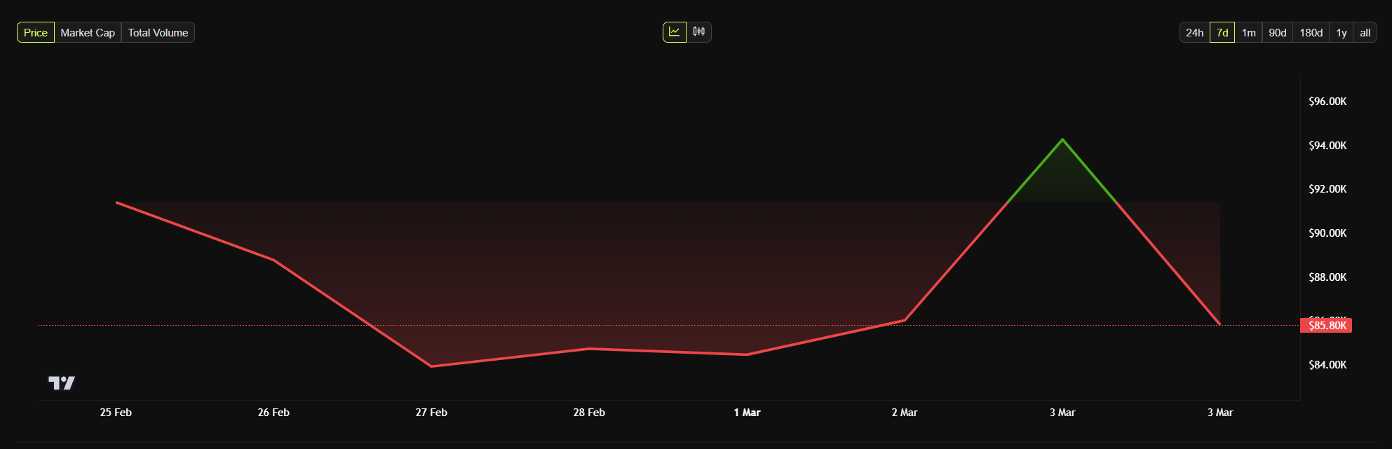 Gestern kündigte Trump eine Krypto-Reserve an, die die Token-Kurse ansteigen ließ. Doch dieser Aufwärtstrend ist heute vollständig verschwunden.