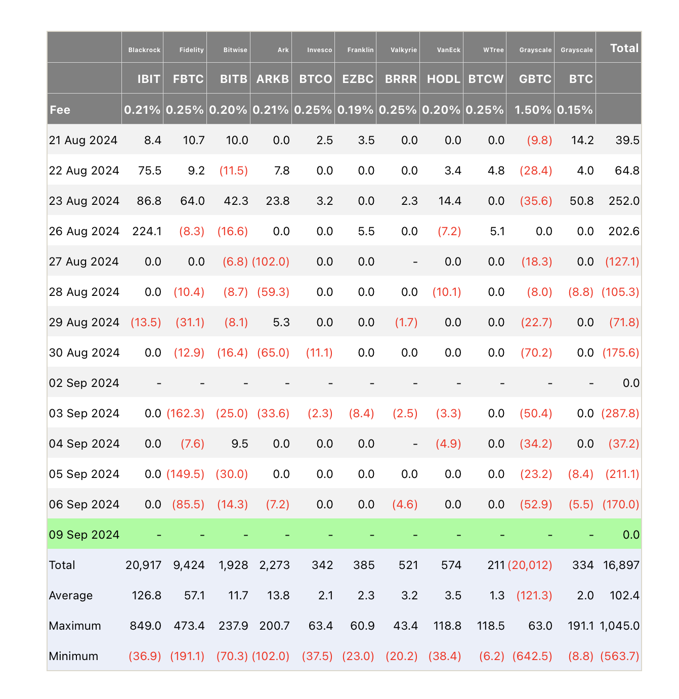 Unterdessen berichtete Bloomberg über die längste Serie täglicher Nettoabflüsse aus US-amerikanischen Bitcoin ETFs seit deren Notierung, mit Abzügen von fast 1,2 Milliarden USD über acht aufeinanderfolgende Handelstage bis zum 6. September.