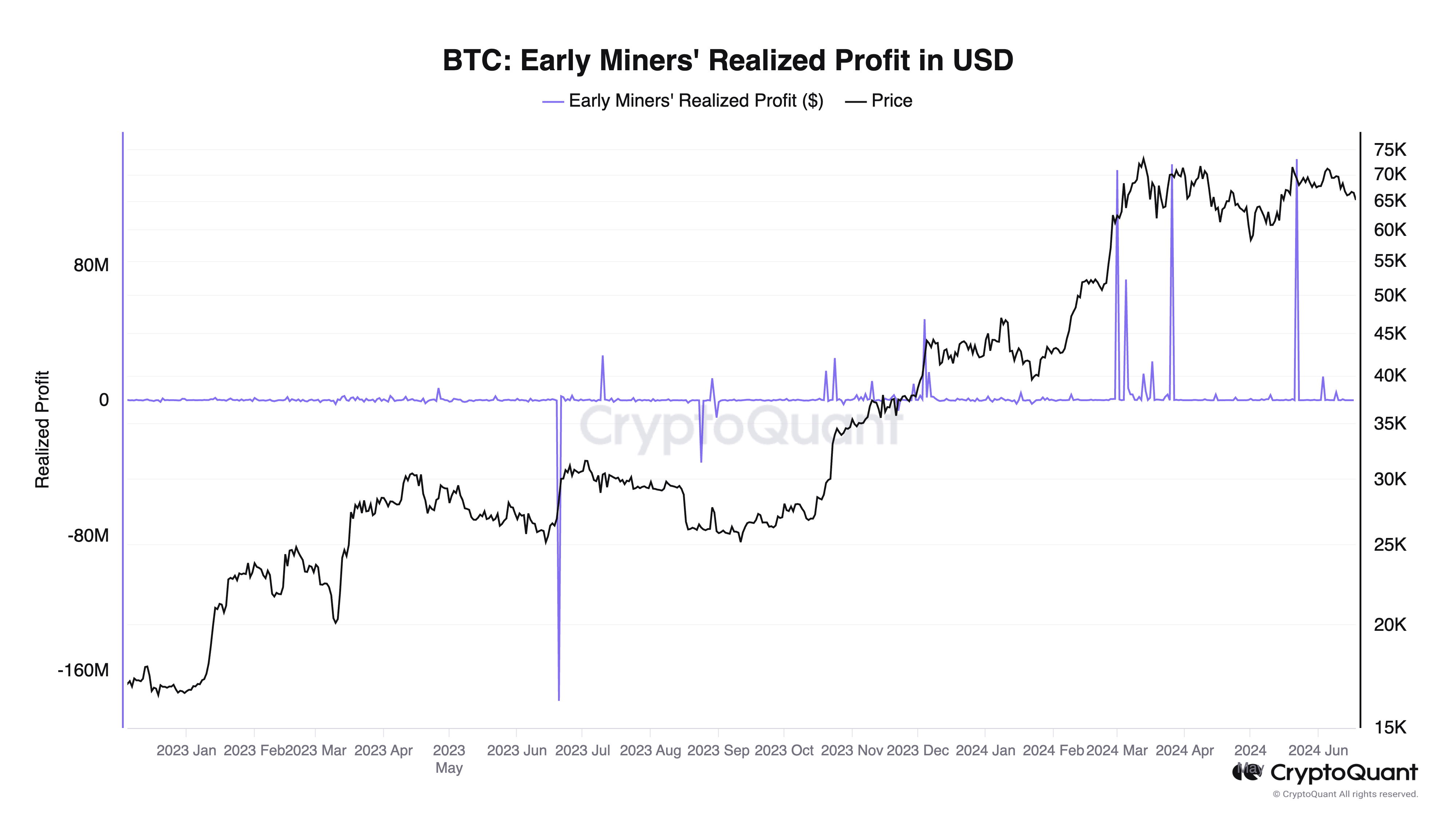 Bitcoin Miner haben ebenfalls zum Abverkauf beigetragen. Sie haben in diesem Jahr etwa 550 Millionen USD an Gewinnen realisiert, als BTC zwischen 62.000 und 70.000 USD handelte. Dieser Trend verstärkte den Abwärtsdruck auf den Kurs.