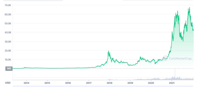 Der Bitcoin Preis, den wir im Jahr 2018 vor dem „großen Crash“ gesehen haben, war für uns außergewöhnlich. Damals stand der BTC Kurs bei knapp 20.000 US-Dollar – für heutige Verhältnisse fast schon ein Worst-Case-Szenario. Denn mittlerweile sprechen wir von der 70.000 USD-Marke, auch wenn der BTC Kurs momentan zwischen 40.000 und 50.000 US-Dollar erkundet.