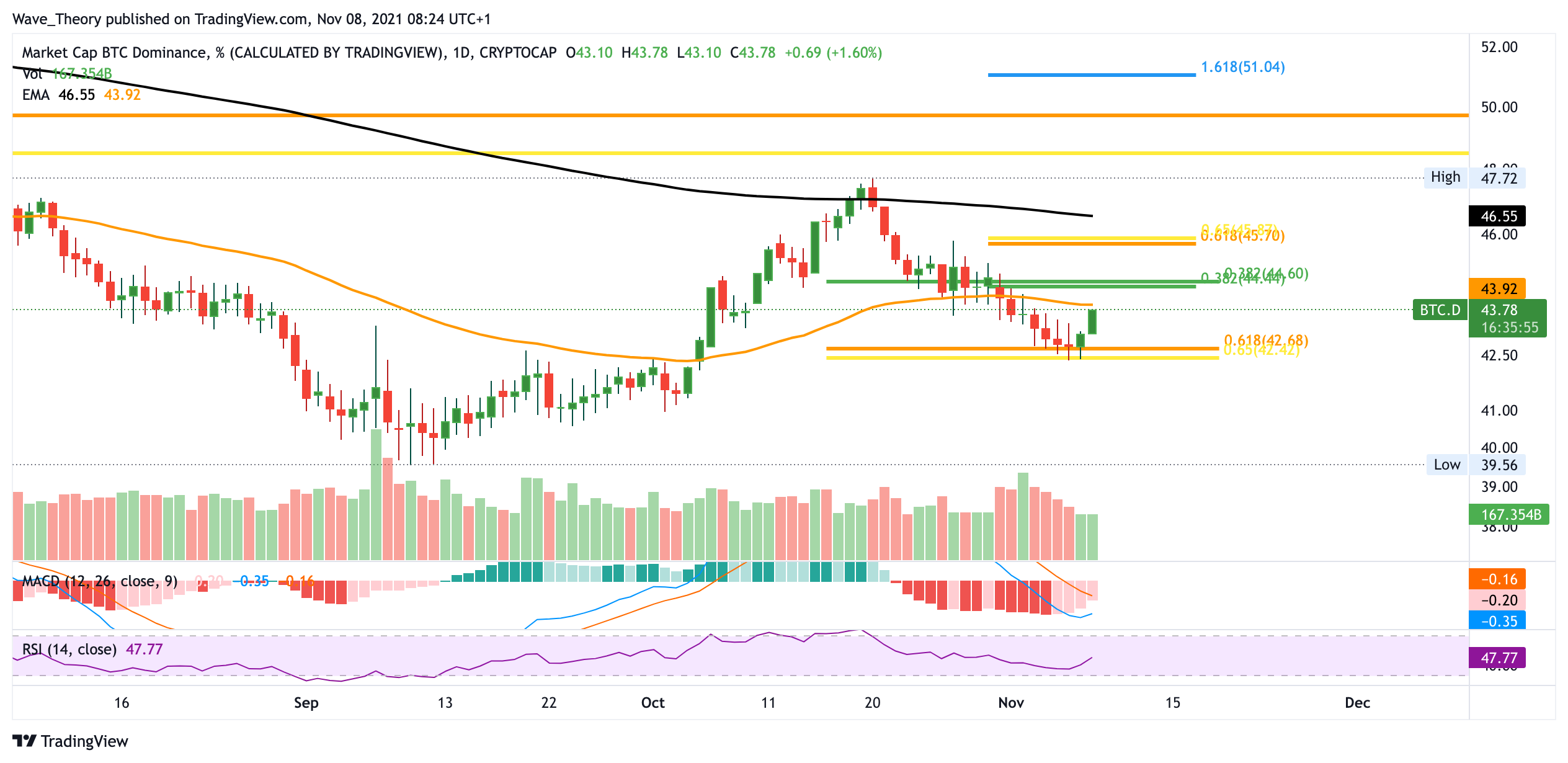 Bitcoin Dominanz prallt an Golden Ratio Unterstützung ab