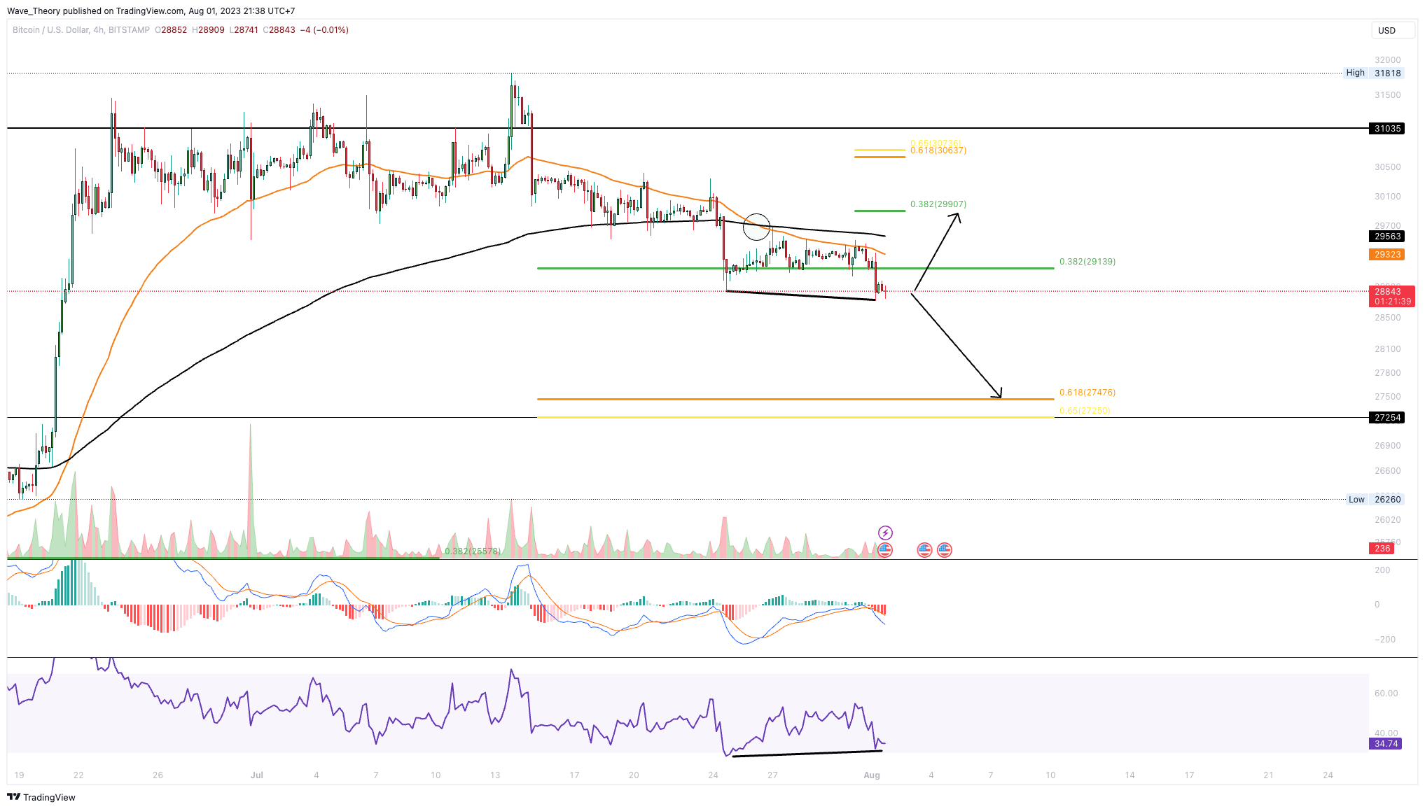 SponsoredDer Bitcoin Kurs hat die 0,382 Fib Unterstützung bei rund 29.140 USD bärisch gebrochen