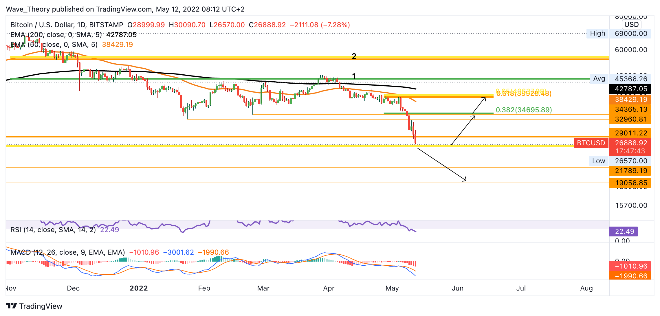 Seit November 2021 wurde keine Bitcoin Kurs Prognose veröffentlicht von uns, ohne auf einen Rückgang auf 26.000 – 29.000 USD hinzuweisen
