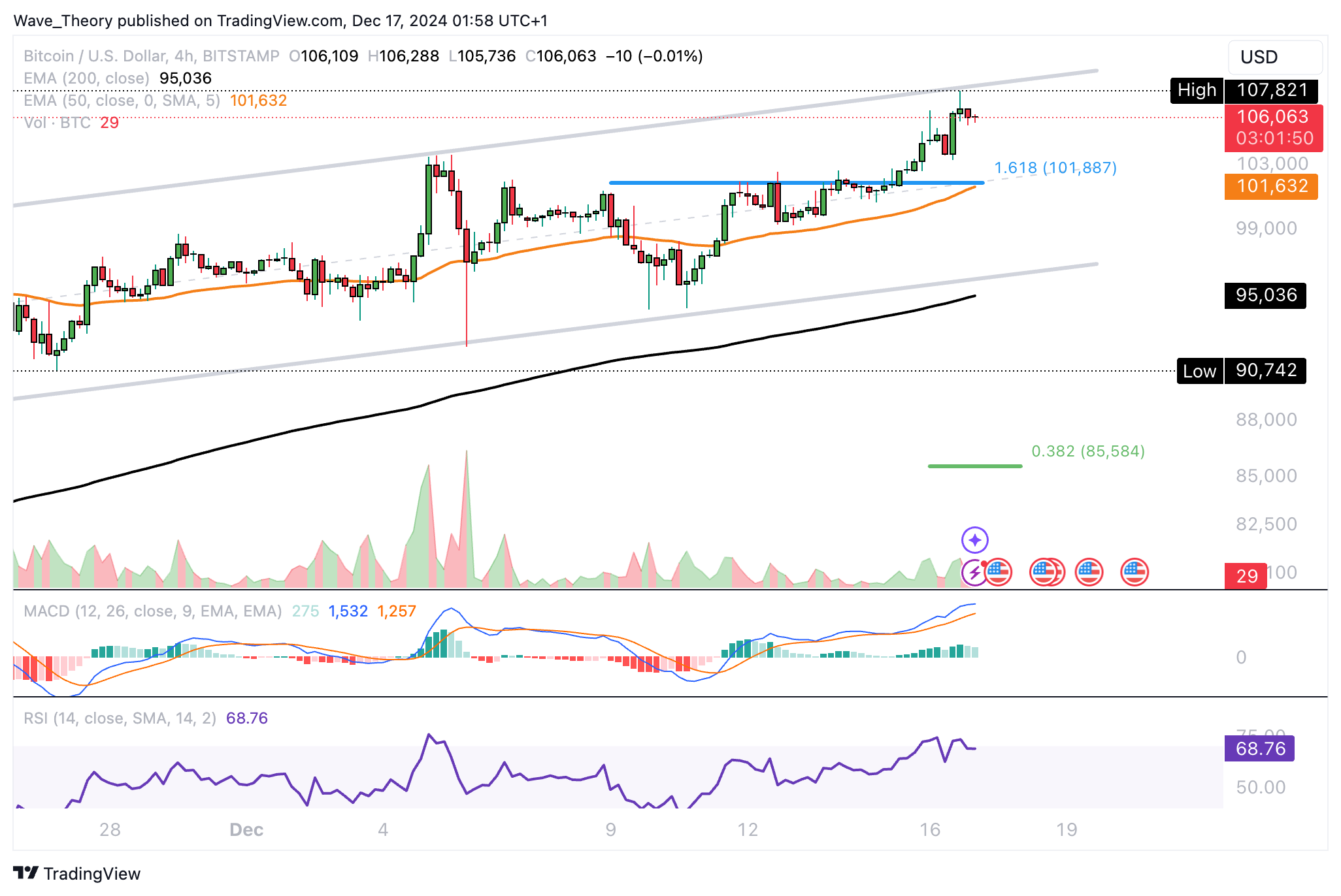 Der BTC Preis hat gestern bei 107.821 USD ein neues Hoch erreicht. Gibt es jetzt noch mehr Aufwärtspotenzial oder setzt Bitcoin bald zur Korrektur an?