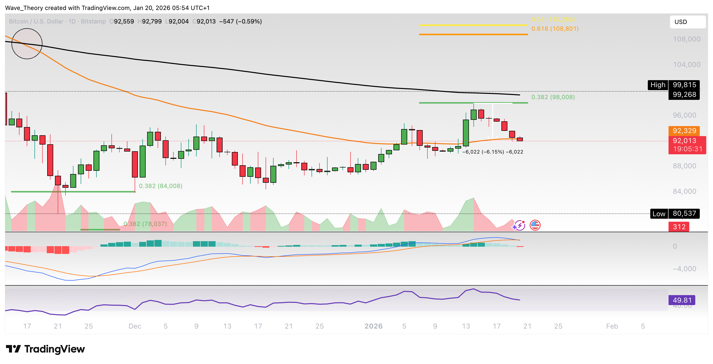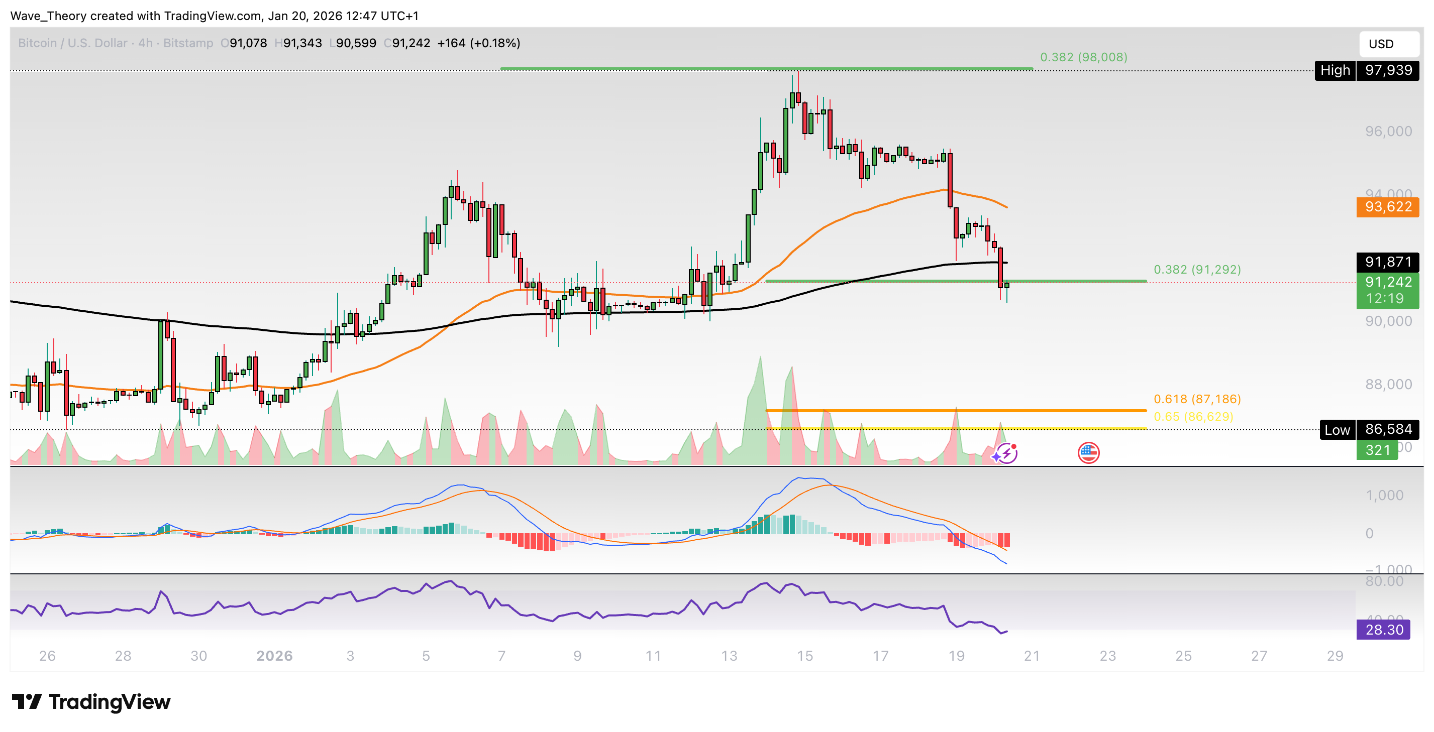 Den zuvor überwundenden Widerstand des 50-Tage-EMA bei etwa 92.330 USD fungiert jetzt als Unterstützung. Doch Bitcoin könnte diesen jetzt bärisch brechen.