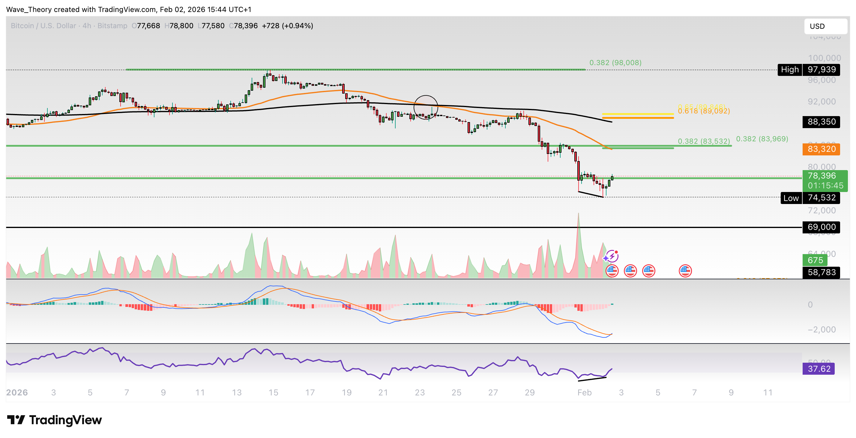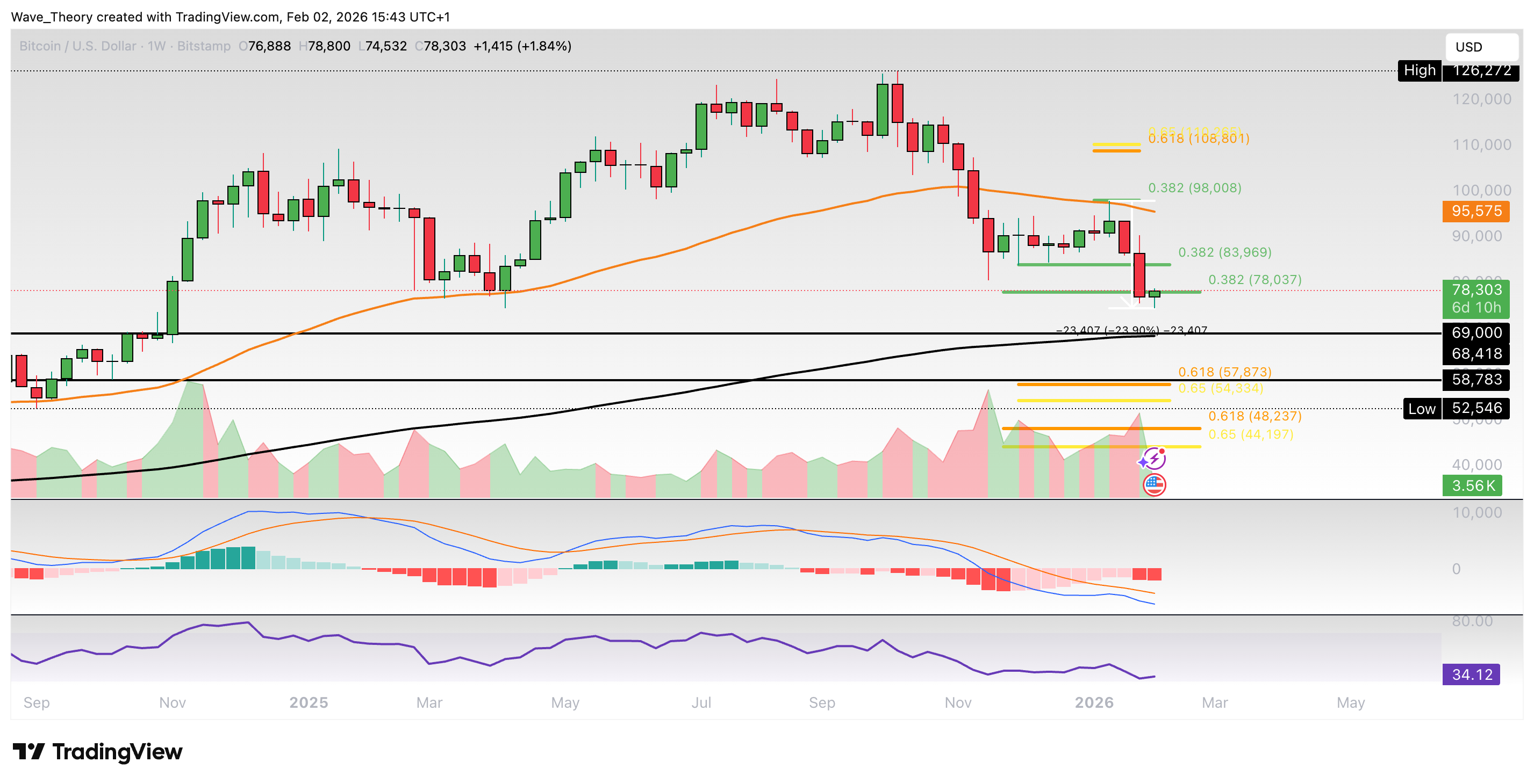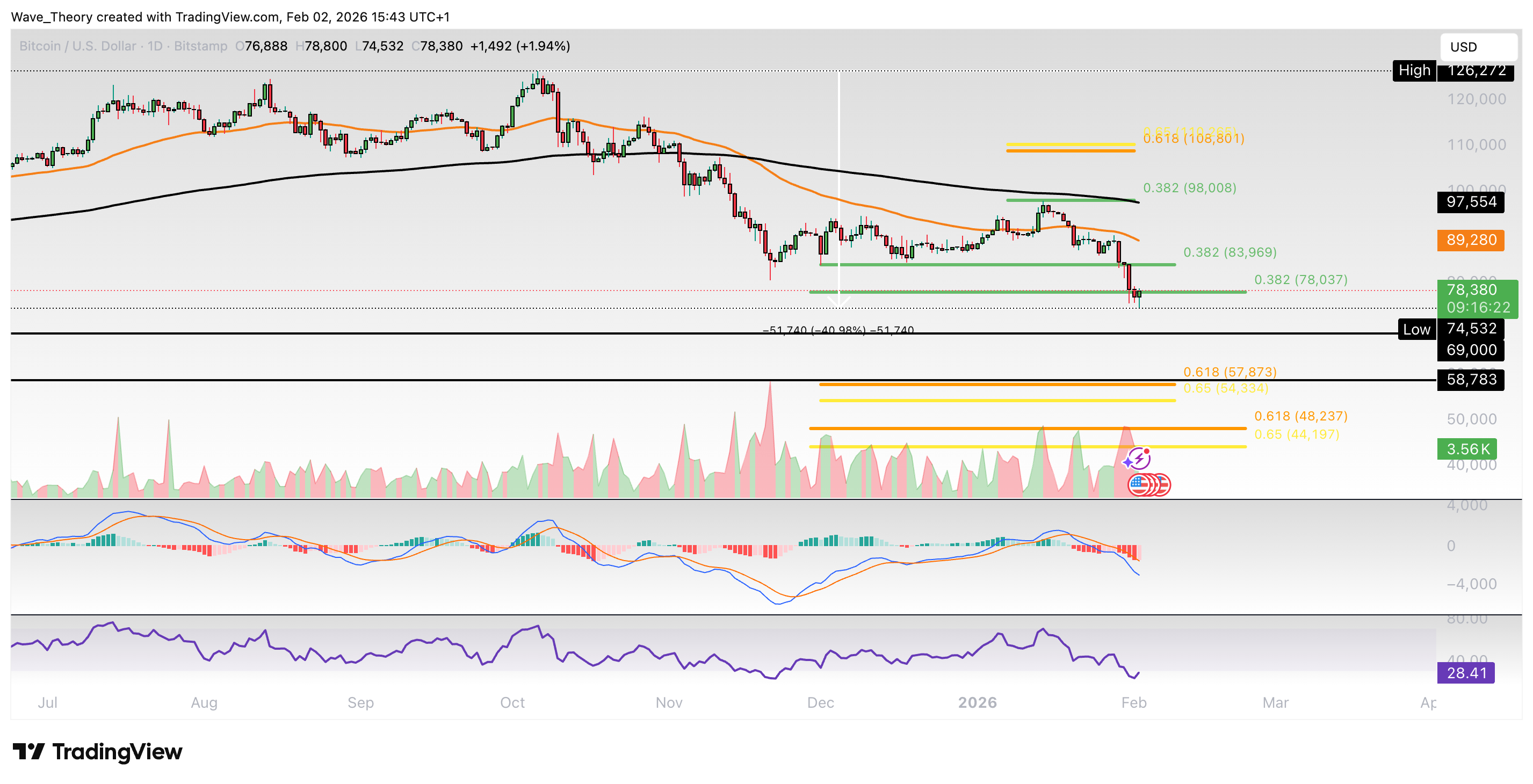 Der Bitcoin Kurs hält sich tapfer am 0,382 Fib Niveau bei rund 78.000 USD
