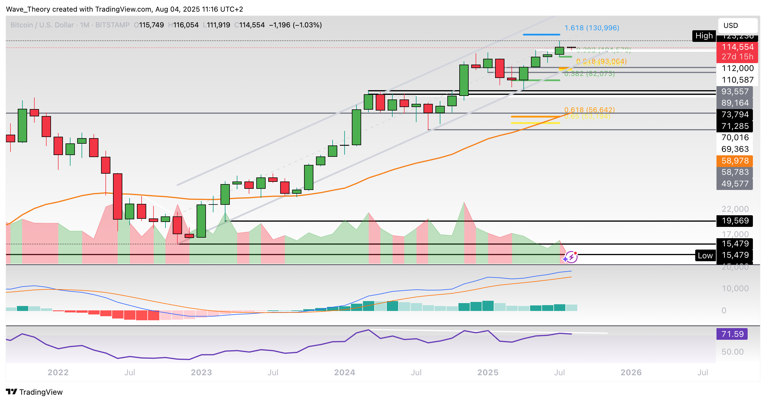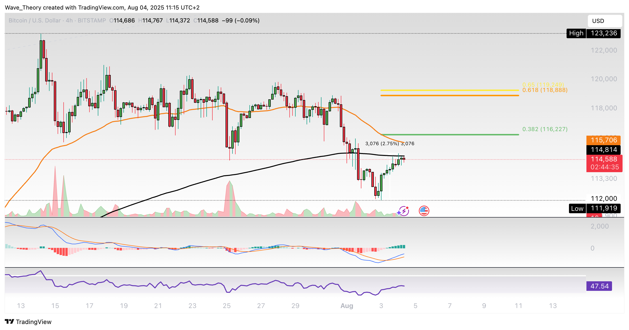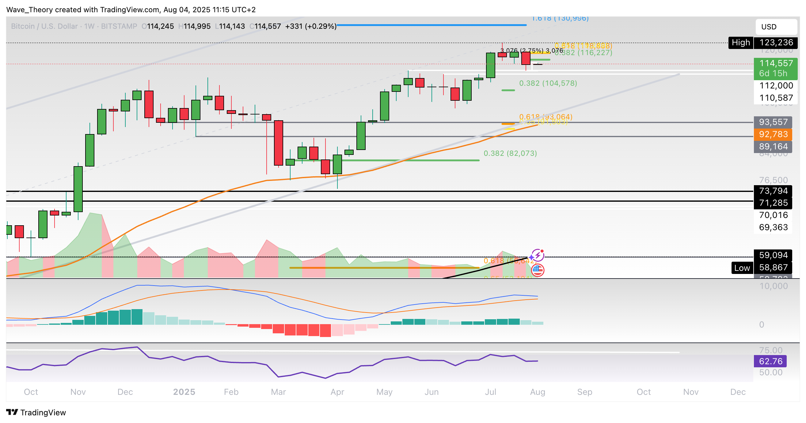 Setzt er die Aufwärtsbewegung fort, warten bei rund 116.225 USD und bei rund 119.000 USD die nächsten signifikanten Fibonacci Widerstände. Mit dem Bruch der Golden Ratio bei rund 119.000 USD ist die Korrekturphase beendet.