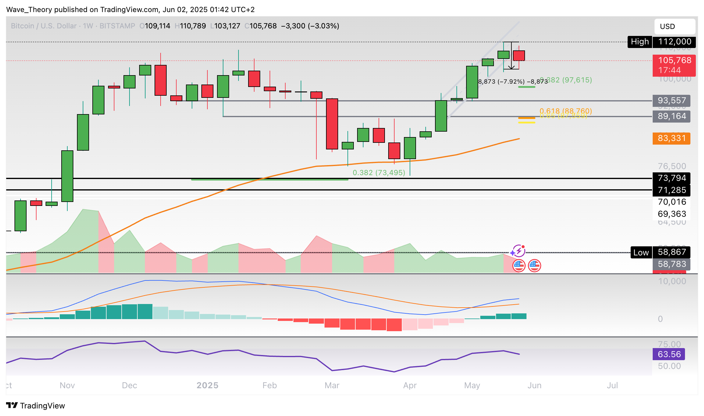 Bitcoin-Prognose für Montag, 02. Juni 2025: Der Bitcoin Kurs ist von rund 112.000 USD auf rund 103.000 USD gefallen. Wie geht es jetzt weiter?