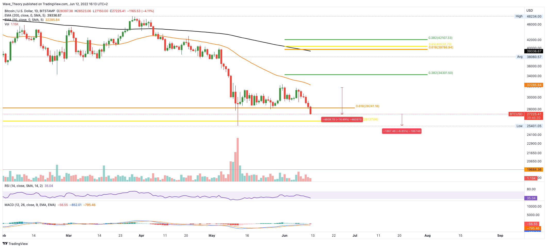 Sollte Bitcoin die Golden Ratio bei rund 26.000 USD und damit auch den 50-Monate-EMA bärisch brechen, wartet erst wieder zwischen 14.000 – 20.000 USD signifikante Unterstützung auf den Bitcoin Kurs.
