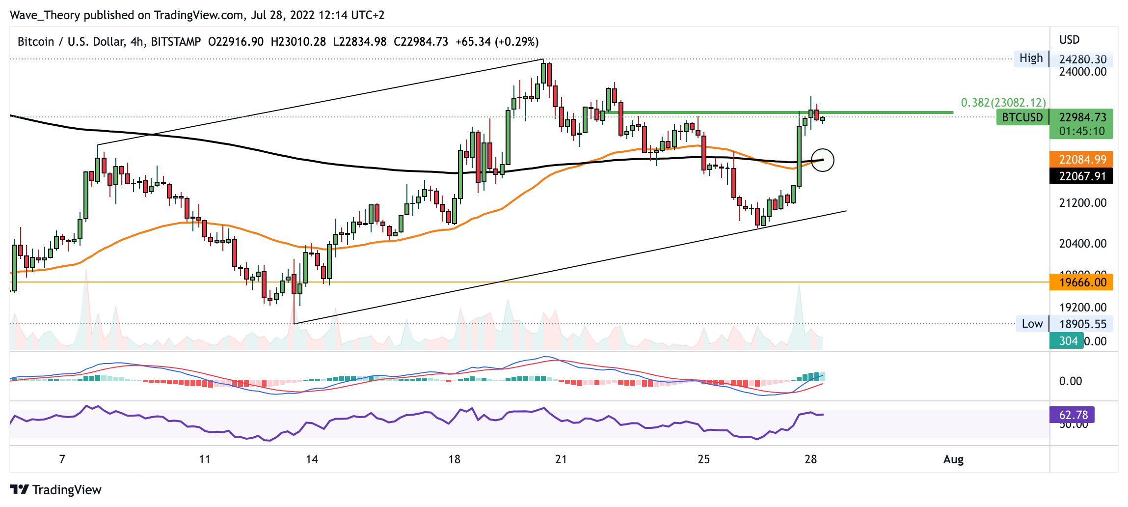 Bitcoin Kurs sollte über dem 0,382 Fib Niveau bei rund 23.000 USD schließen