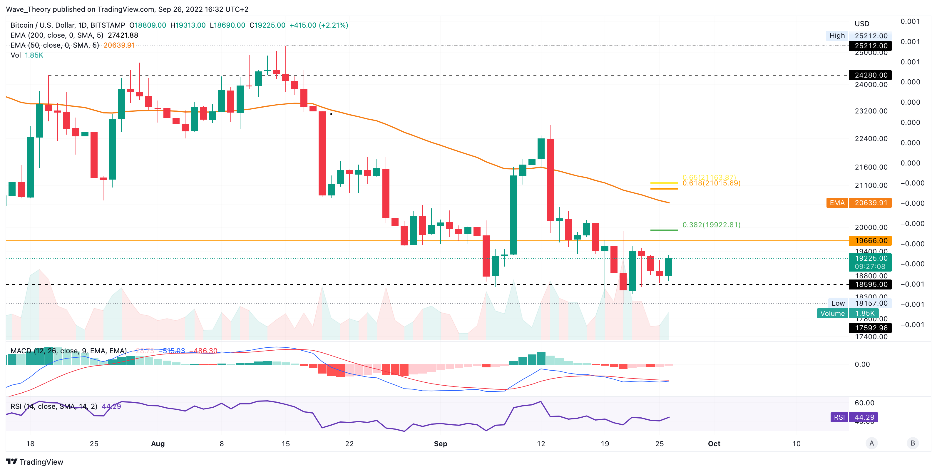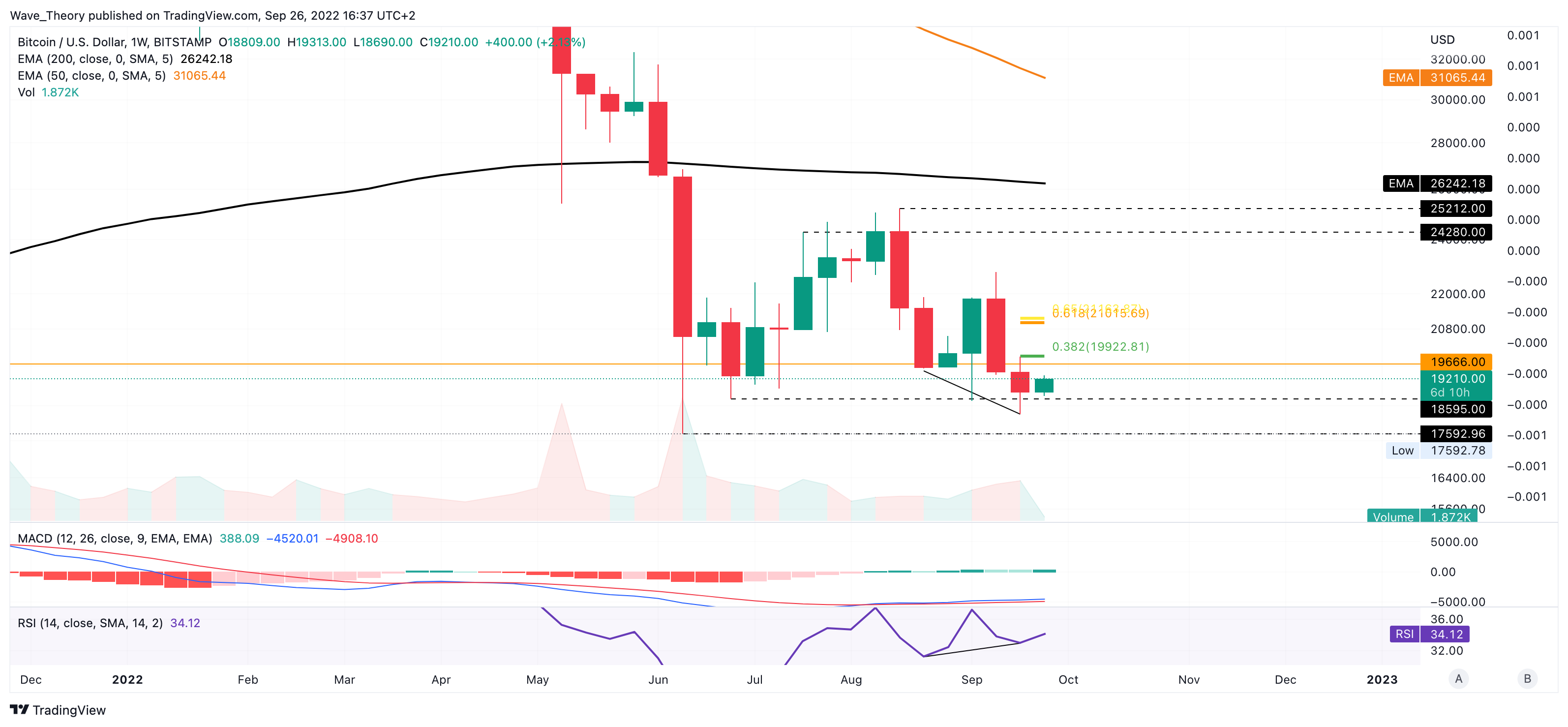Zuvor erreichte Bitcoin das Fib Niveau bei rund 20.636 USD nicht, sondern setzte seinen Abwärtstrend weiter fort, um den letzten Tiefpunkt bei rund 18.600 USD zu übertreffen. Dabei fiel BTC auf rund 18.157 USD.
