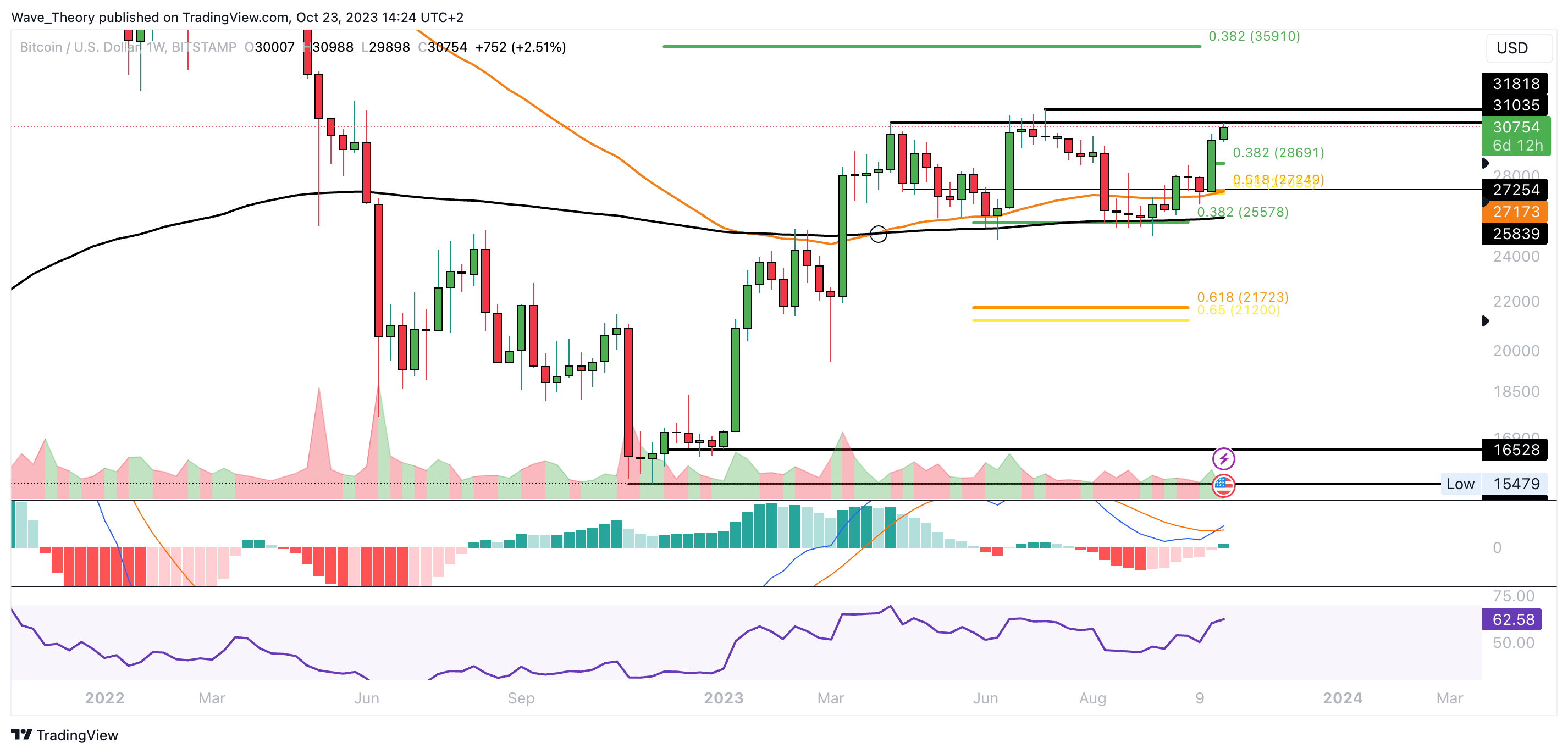 Steigt der Bitcoin Kurs jetzt bis zum 0,382 Fib Niveau bei rund 36.000 USD?