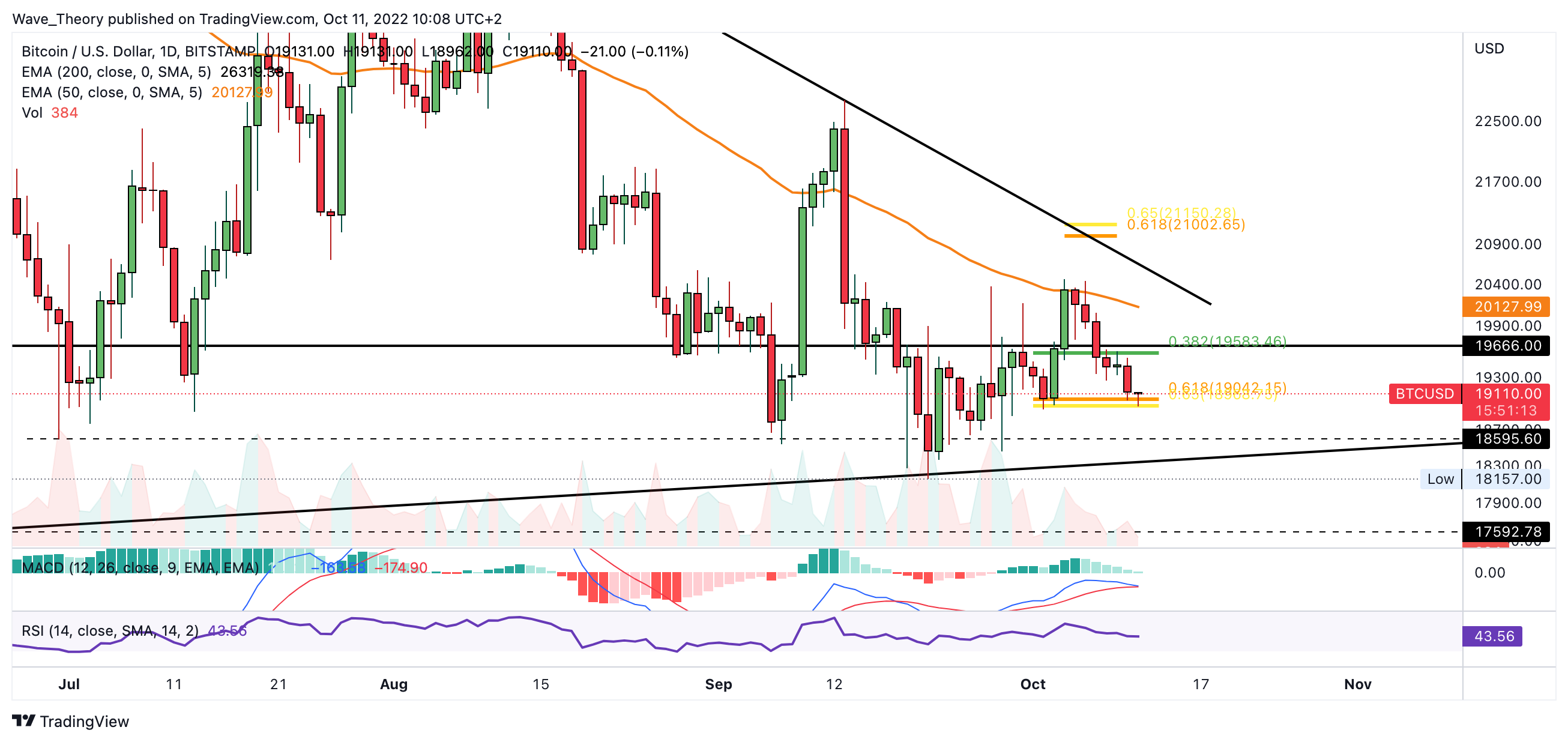 Der Bitcoin Kurs ist jetzt zur Golden Ratio Unterstützung bei rund 19.000 USD zurückgekehrt, woran BTC jetzt abprallen könnte. Dabei findet Bitcoin bereits bei rund 19.211 USD und 19.400 USD die nächsten signifikanten Fib Widerstände. Danach warten dann noch bei rund 19.538 USD und 19.900 USD signifikante Fibonacci Widerstände.