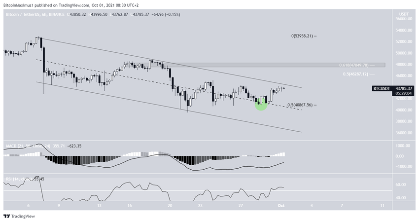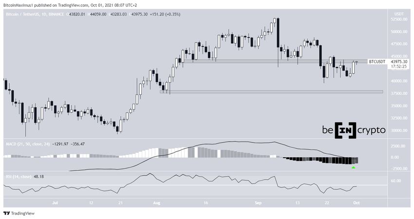 Am 30. September 2021 ist der BTC Kurs deutlich angestiegen. Der Bitcoinpreis näherte sich dem Widerstandsbereich bei 44.000 USD. Dieser Widerstandbereich fungierte im August als Support. Sollte der BTC Kurs den Bereich erneut als Support validieren, dann wäre dies eine äußert bullische Kursentwicklung.