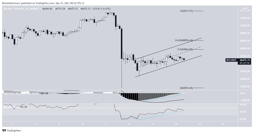 Auf dem 2-Stunden-Bitcoin-Chart kannst du sehen, dass der Bitcoin Kurs innerhalb eines aufsteigenden, parallelen Channels gehandelt wird. Innerhalb von solchen Channeln finden meistens Korrekturbewegungen statt. Bei der letzten Aufwärtsbewegung sind auch der RSI und der MACD angestiegen.
