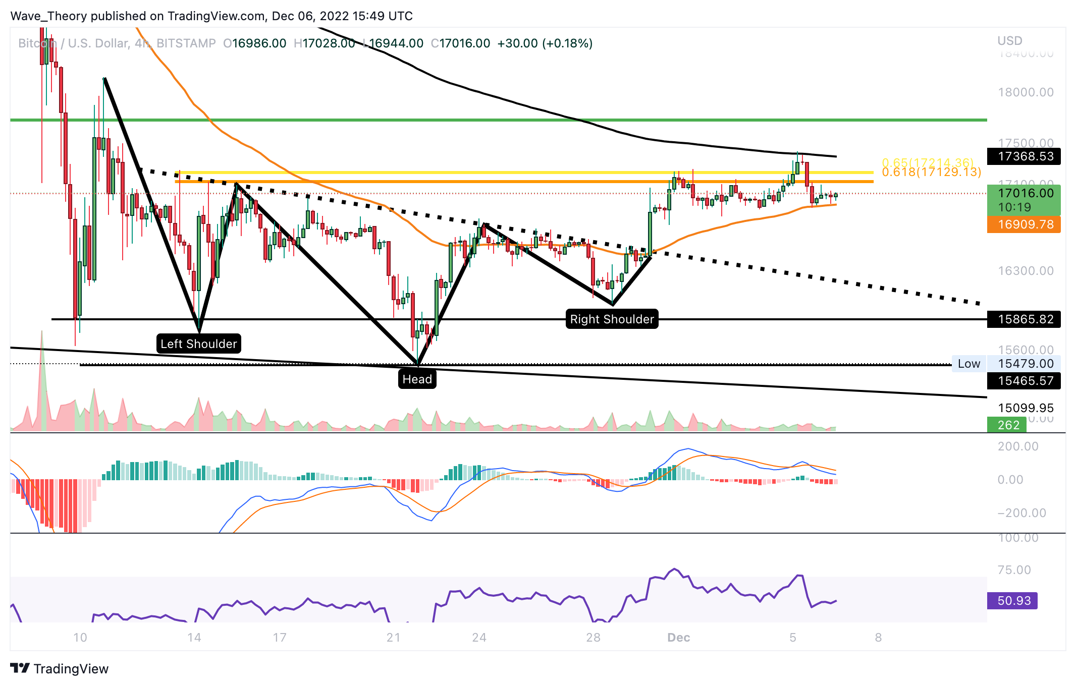 Anschließend konnte der Bitcoin Kurs konnte den 50-4H-EMA Widerstand bei rund 16.500 USD brechen, womit sich der Bitcoin Kurs jetzt zum nächsten Fibonacci Widerstand bei rund 17.750 USD bewegen könnte. Dort stößt der BTC Kurs zusätzlich auf den 200-4H-EMA Widerstand bei rund 17.520.”