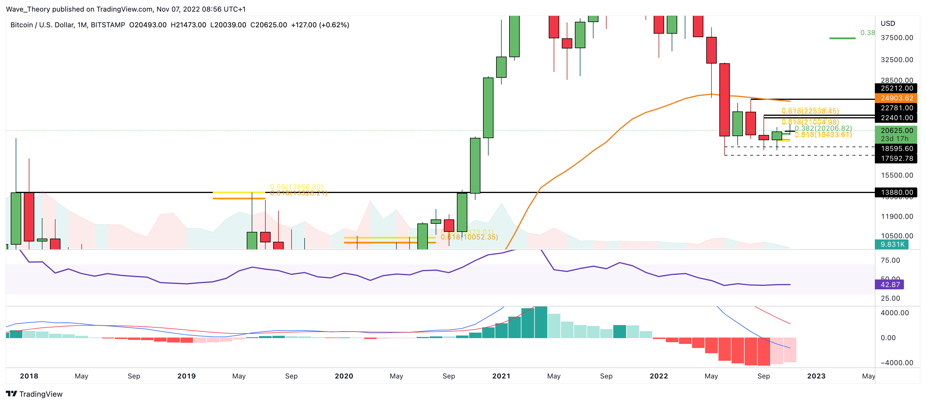 Sofern es Bitcoin gelingt, den 50-Monate-EMA bei rund 24.900 USD zu überwinden, könnte tatsächlich eine kleine Bullenrallye in Richtung des Fib Niveaus bei rund 37.300 USD starten.