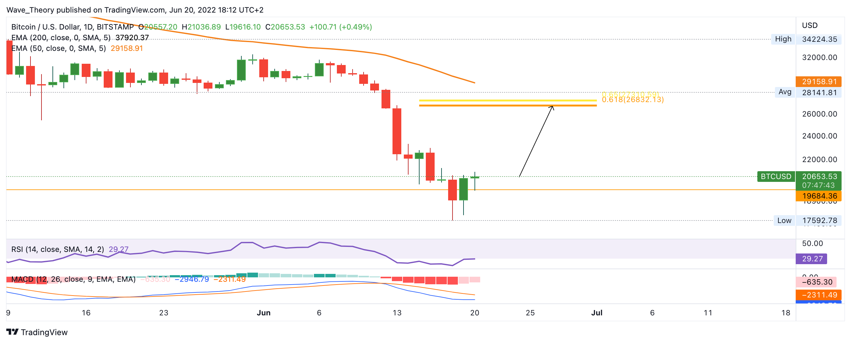 Sollte Bitcoin bis 27.000 USD steigen, stößt er dort wahrscheinlich auf bärische Ablehnung, denn dort stößt Bitcoin auf sehr starken Widerstand. Zusätzlich zur Golden Ratio und dem 50-Monate-EMA verläuft dort auch noch der 200-Wochen-EMA, welcher ebenfalls als Widerstand fungiert.