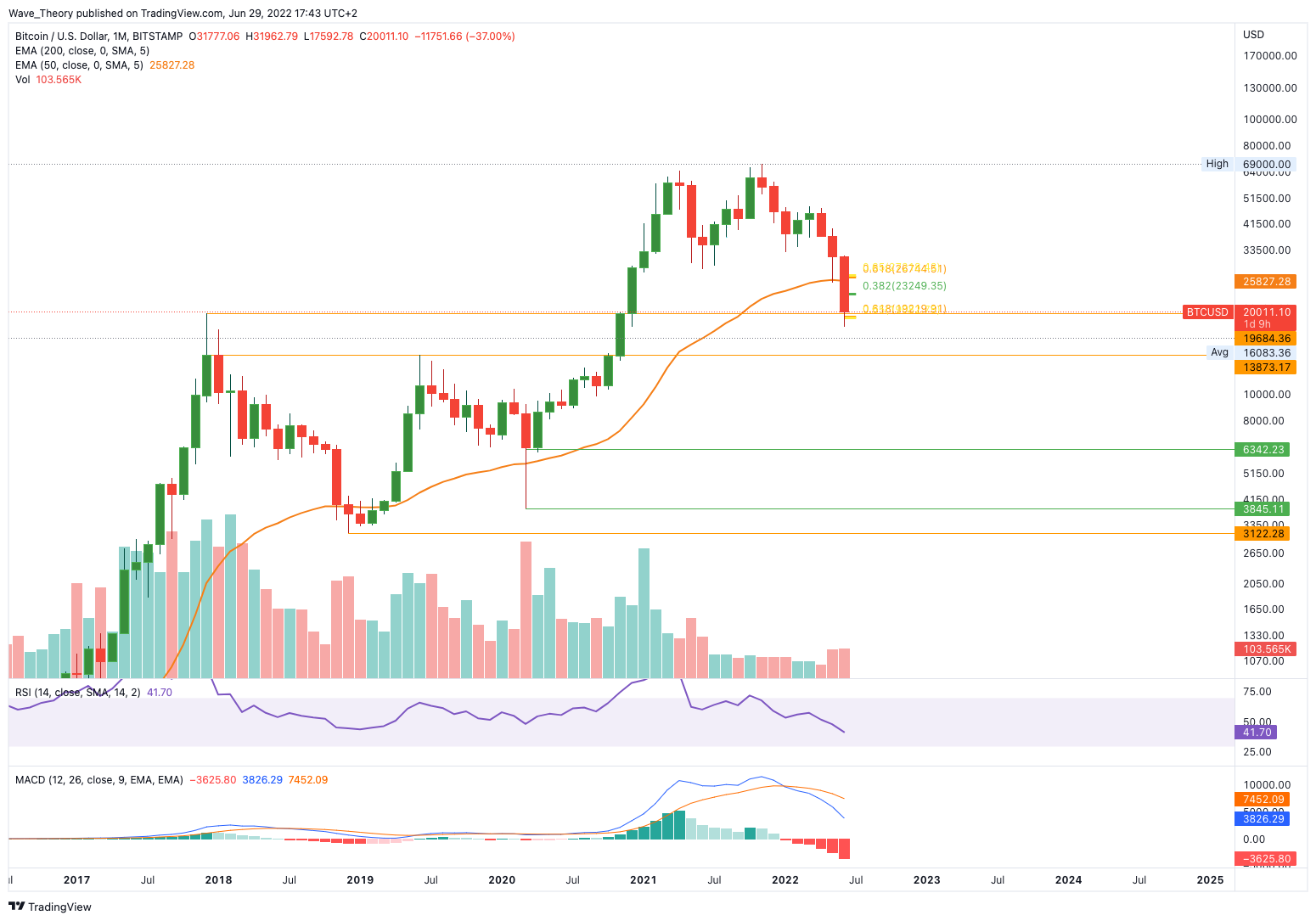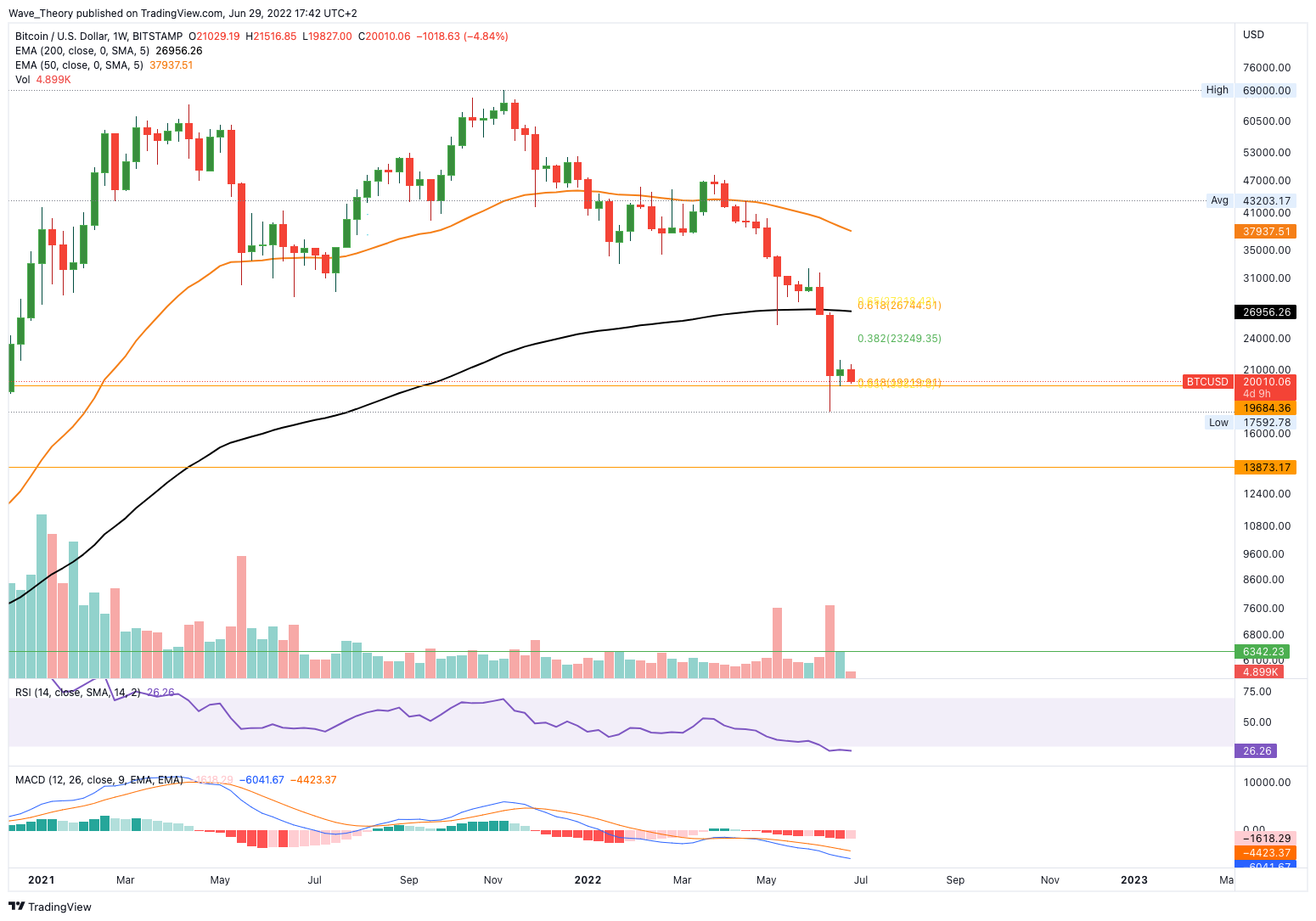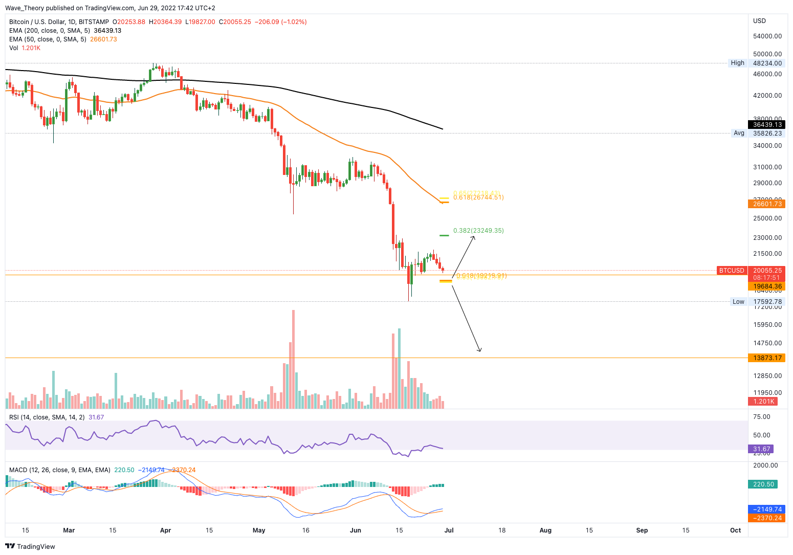 Bitcoin hat immer noch die Chance, zwischen 14.000 – 20.000 USD einen Boden zu finden. Aktuell sieht es aber nach einer Fortsetzung des Abwärtstrends aus.