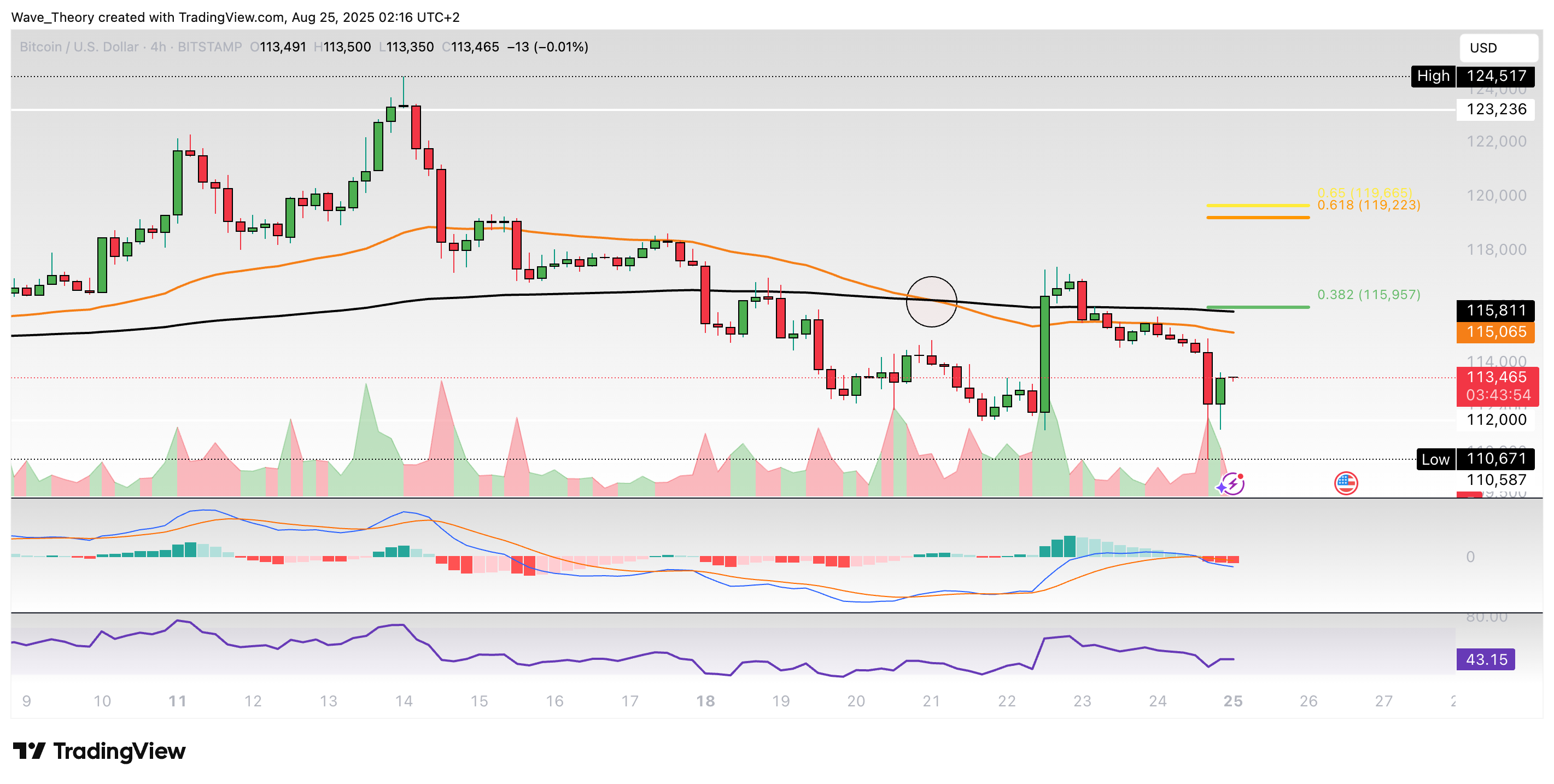 Bitcoin-Prognose für Montag, 25. August 2025: Der Bitcoin Kurs ist bereits rund 11 % gefallen. Fällt der BTC Preis jetzt noch tiefer?