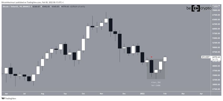 Sollte der Wochenschlusskurs über dem aktuellen Preis bzw. über 43.070 USD liegen (dem Hochpunkt der rot markierten Wochenkerze), dann würde auf dem Wochenchart ein Morning-Star-Pattern zu sehen sein. Dieses Pattern sieht man häufig bei einer bullischen Trendwende. Die Preisentwicklung in den nächsten Tagen wird also für die mittelfristige Entwicklung eine entscheidende Rolle spielen.