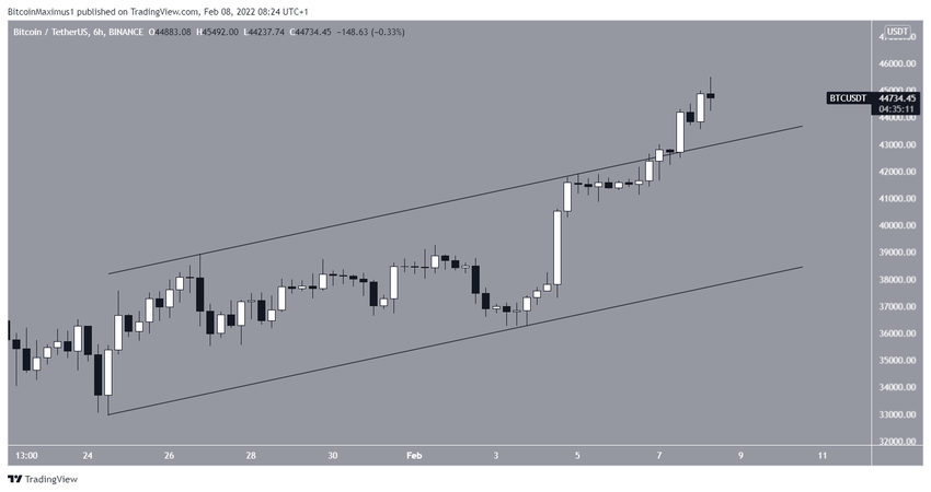 Auf dem 6-Stunden-Chart kannst du zudem sehen, dass der BTC Preis über einen aufsteigenden, parallelen Channel ausgebrochen ist. Das ist ein Zeichen dafür, dass die aktuelle Aufwärtsbewegung impulsiv ist und wir kurzfristig gesehen neue lokale Höchststände sehen könnten.