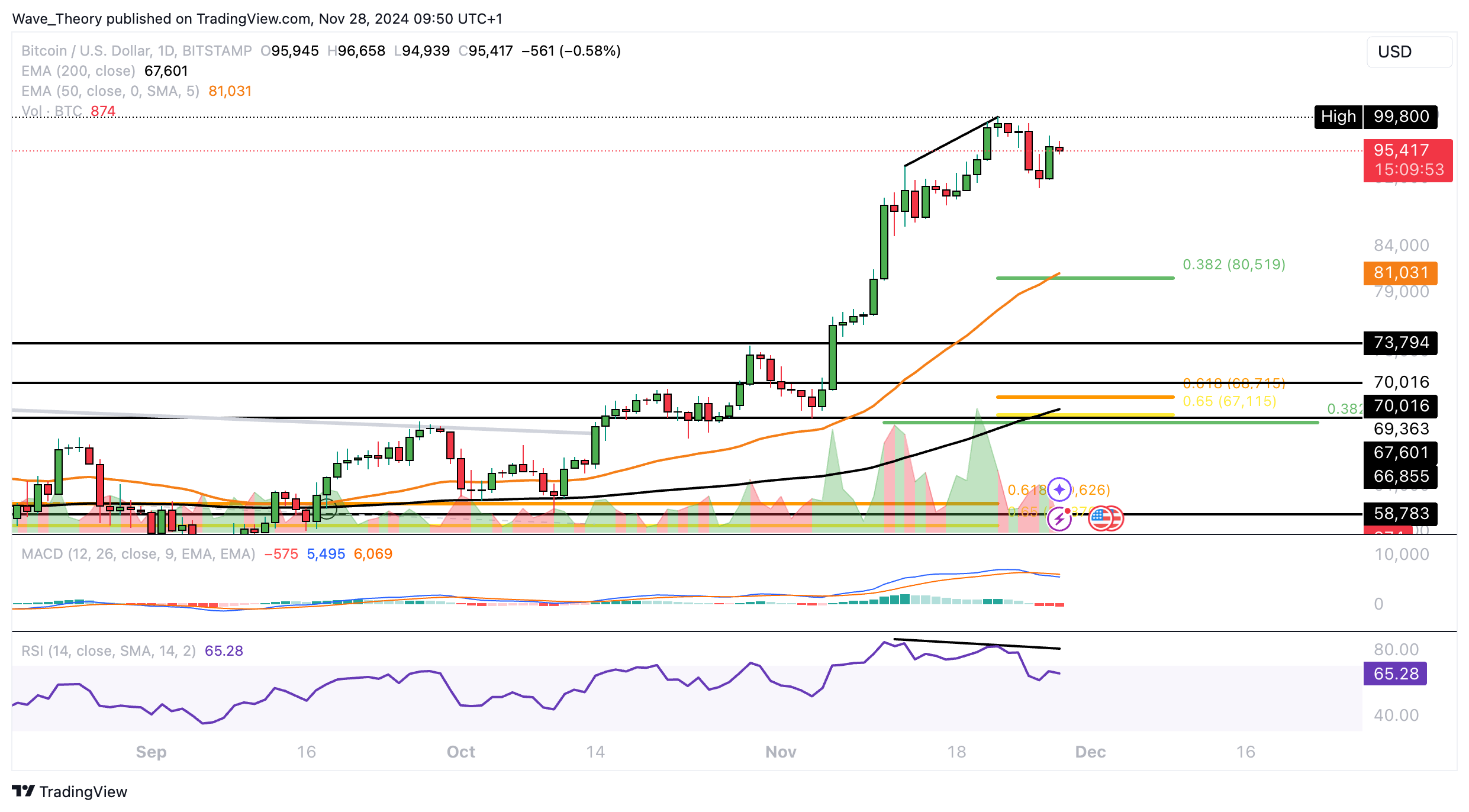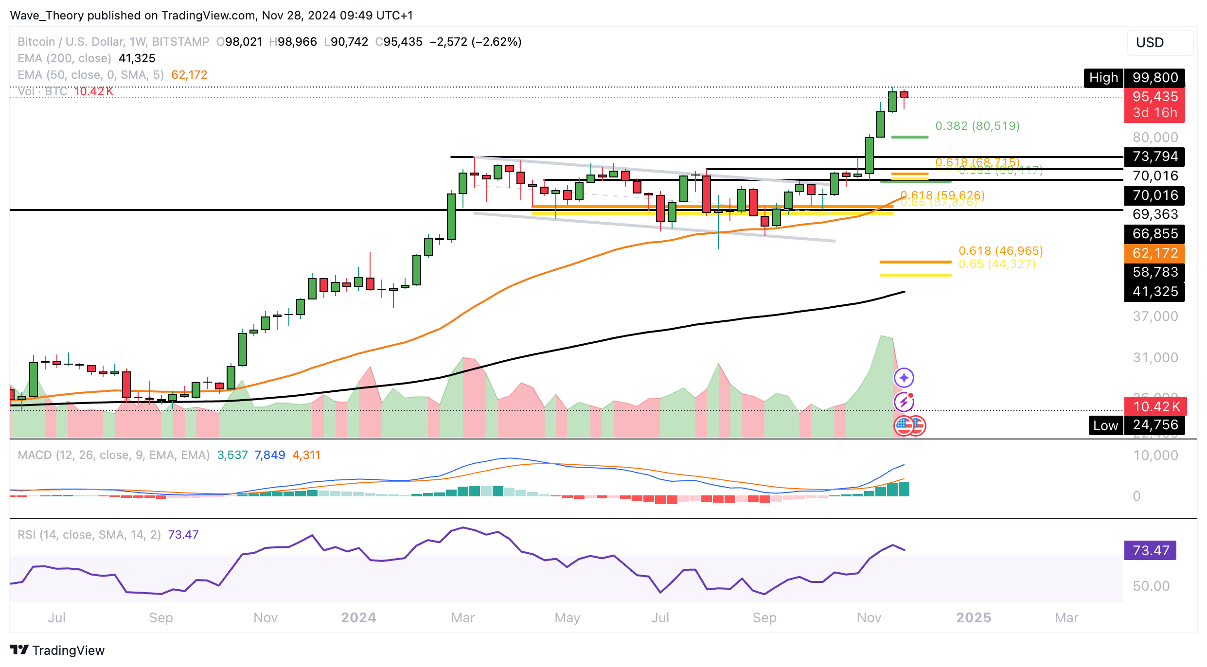 Wird BTC erst eine Korrektur einleiten, bevor er die 100.000 USD Marke ansteuert? Oder wird er sie vielleicht noch diese Woche erreichen?