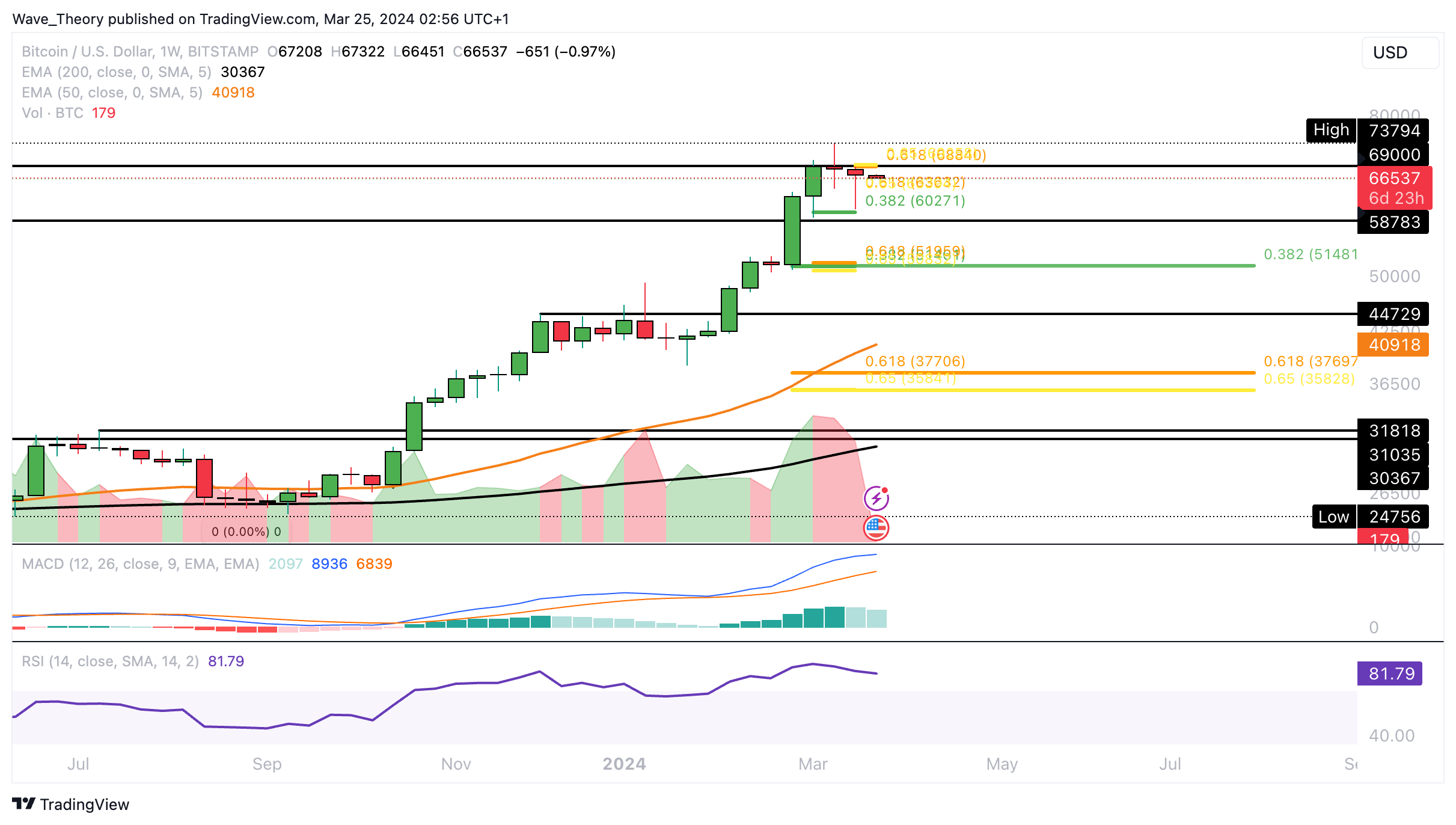Doch den kritischen Golden Ratio Widerstand bei rund 69.000 USD konnte Bitcoin bisher nicht überwinden. Diesen gilt es zu brechen, damit Bitcoin die Korrekturbewegung beendet und das ATH von rund 73.800 USD anvisiert.