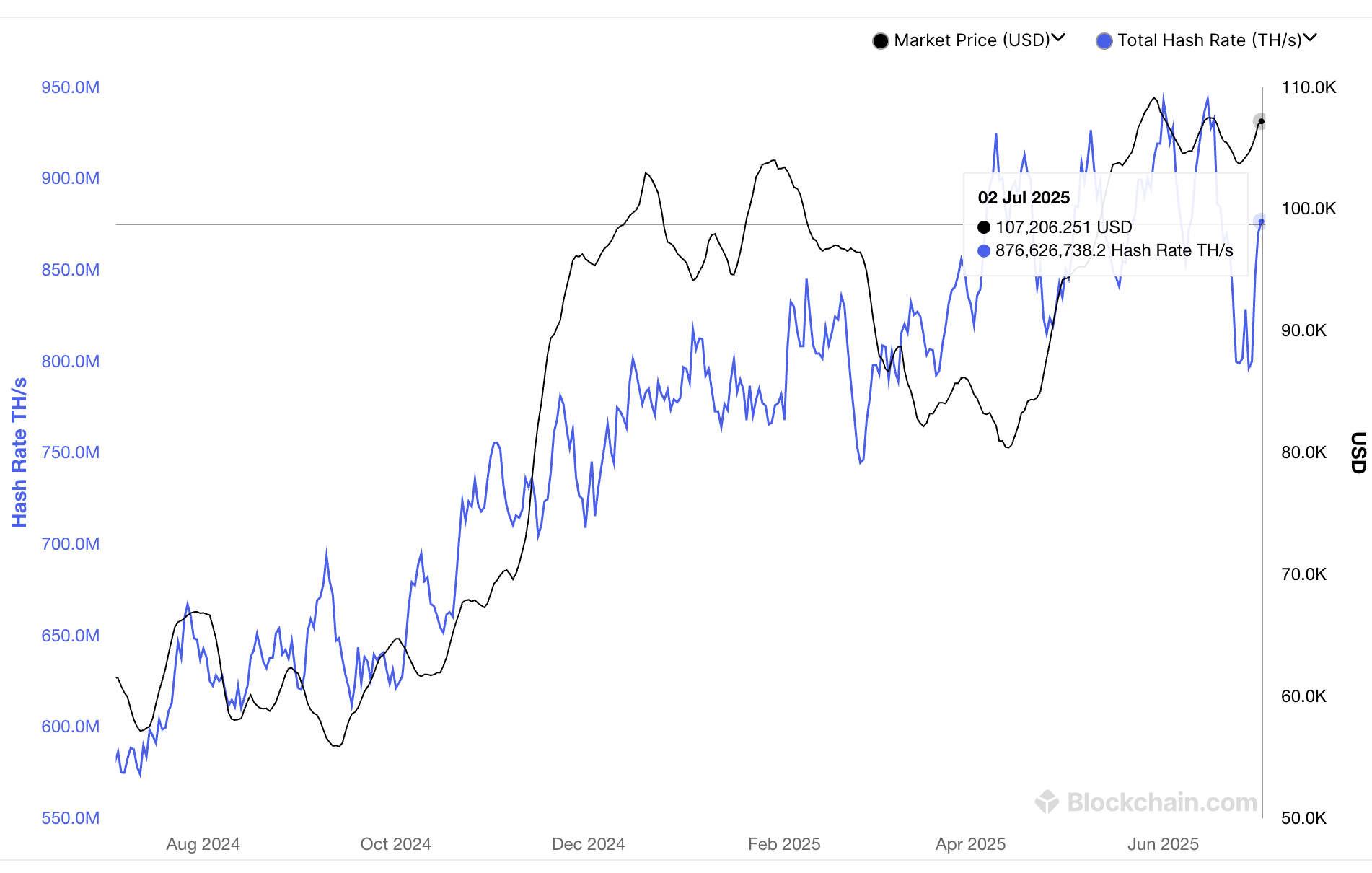 Mit einem 8-Monats-Tief markierte der Juni 2025 einen Wendepunkt für die Hashrate des Bitcoin-Netzwerks.