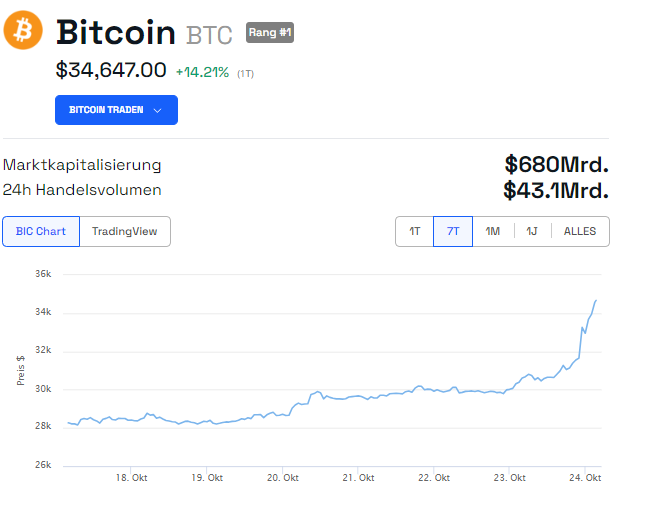 Kurze Zeit nach den Tweets des Bloomberg-Analysten stieg der Kurs von Bitcoin sprunghaft an. In nur wenigen Stunden erreichte der Preis dann mit über 35.000 US-Dollar einen neuen Jahreshöchststand.