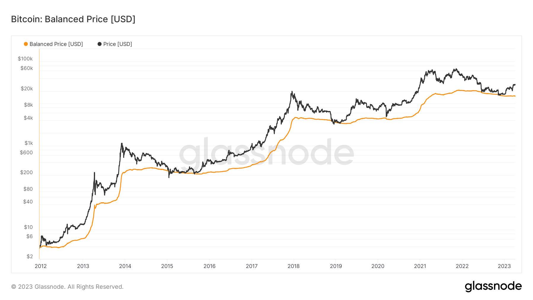 Gemäß dem Balanced Price Indikator deutet alles darauf hin, dass Bitcoin im aktuellen Zyklus bereits den Tiefpunkt erreicht hat. Der Indikator zeigt, dass der absolute Tiefpunkt jedes Zyklus erreicht wird, wenn der USD-Preis von Bitcoin die Balanced Price Linie erreicht. Danach folgt in der Regel ein starker Aufwärtstrend.