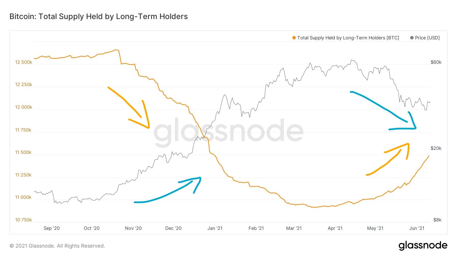 In den letzten Wochen haben wir eine verstärkte Bitcoin-Akkumulation von langfristige Hodlern gesehen. In früheren Zyklen war dieses Verhalten einerseits ein Anzeichen dafür, dass ein Bärenmarkt bevorsteht. Andererseits konnte man damit auch potenzielle Markttiefs besser einschätzen.