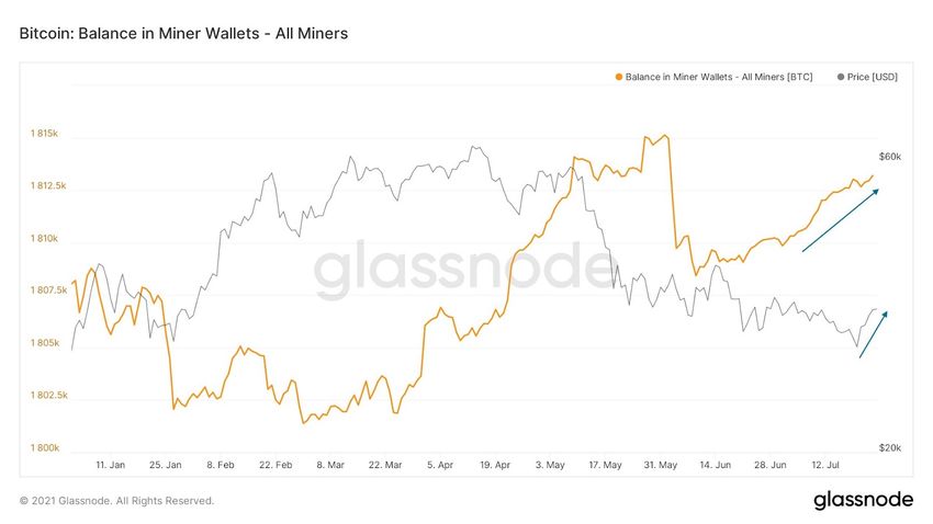 Der bekannte Investor @mskvsk merkte ebenfalls an, dass die Funding Rates endlich wieder positiv geworden sind. Des Weiteren zeigte er, dass die Miner seit Mai 2021 trotz der negativen Marktstimmung weiterhin kontinuierlich BTC akkumulierten. Die Langzeit-Halter scheinen also nach wie vor davon überzeugt zu sein, dass der Markt immer solide ist.