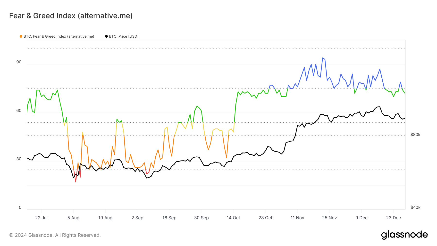 Das aktuelle Gier-Niveau zeigt Erholungspotenzial, solange es nicht zu übermäßigem Verkaufsdruck führt. Während Verkäufe weiterhin möglich sind, könnte eine gedämpfte Marktstimmung Bitcoin die Chance auf kurzfristige Gewinne bieten.
