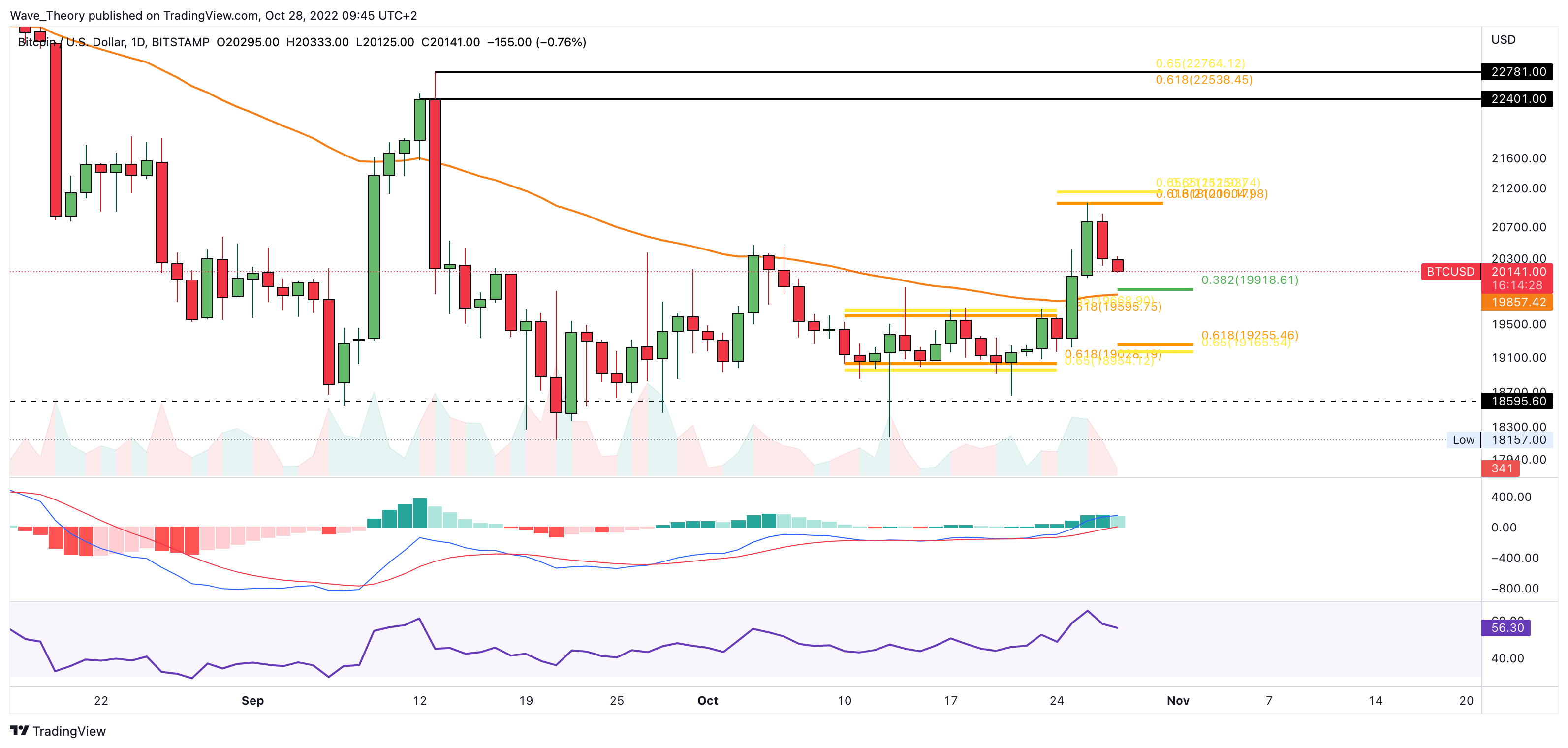 Sollte diese Unterstützung nicht halten, könnte Bitcoin spätestens an der Golden Ratio Unterstützung bei rund 19.250 USD bullisch abprallen, um die Aufwärtsbewegung fortzusetzen. Sofern Bitcoin an einem der beiden Niveaus abprallt, bleibt die Aufwärtsbewegung intakt.