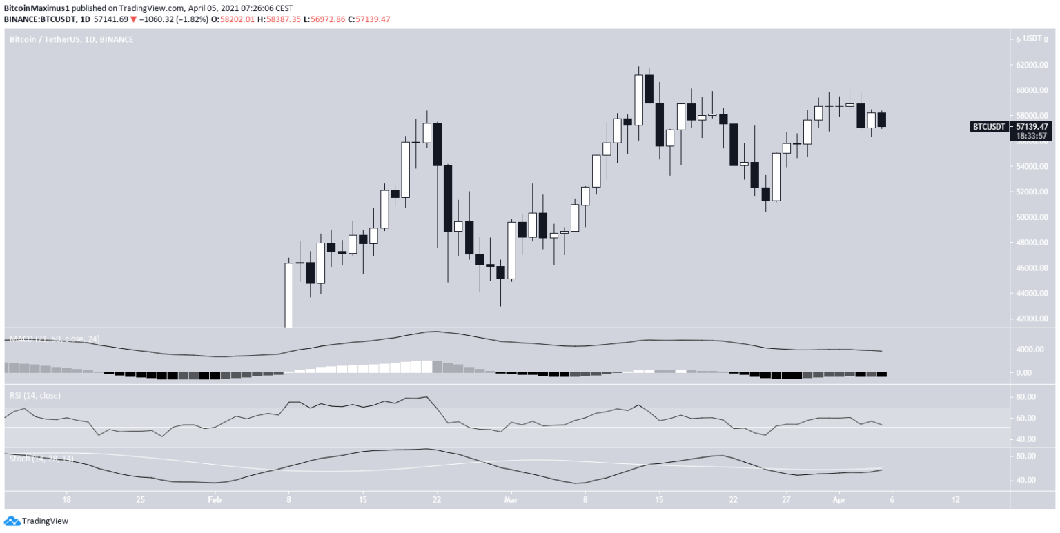 Der Bitcoin Preis erreichte am 2. April 2021 einen Höchststand bei 60.200 USD und ist seitdem wieder etwas gefallen.