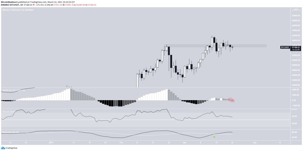 Der Bitcoin Preis befindet sich zum Zeitpunkt der Veröffentlichung in der Nähe des Support-Levels bei 57.800 USD. Der gestrige Tagesschlusskurs lag etwas unterhalb des Levels.