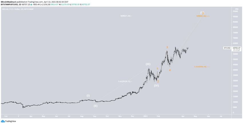 Der Bitcoin Kurs wird wohl bald über das Widerstandslevel bei 61.600 USD ausbrechen und anschließend ein neues Allzeithoch erreichen.
