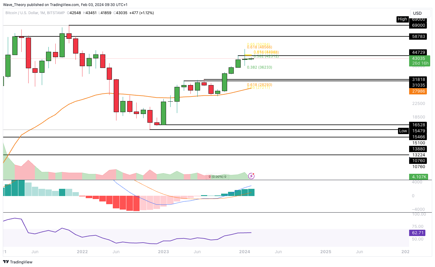 Wenn er die 50.000 USD Marke knackt, liegt das nächste Kursziel am Allzeithoch bei rund 69.000 USD. Anschließend könnte Bitcoin die 100.000 USD Marke anvisieren.