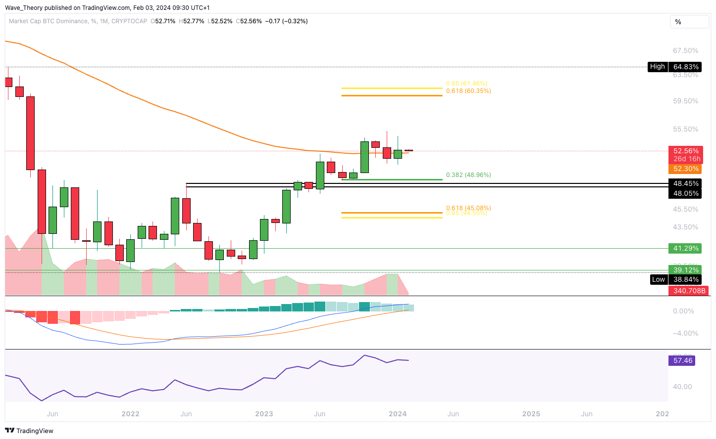 Die Bitcoin Dominanz befindet sich weiterhin über dem 50-Monate-EMA