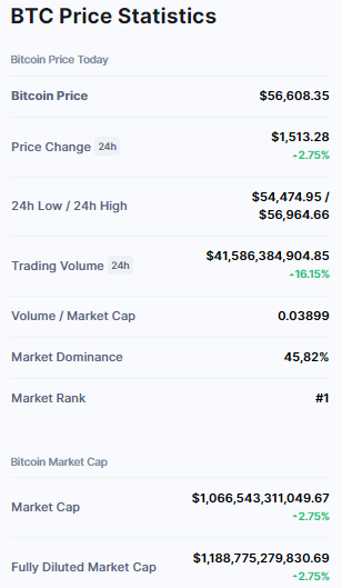 - Preislich bewegen wir uns mit dem Bitcoin Kurs im Bereich von 56.000 US-Dollar