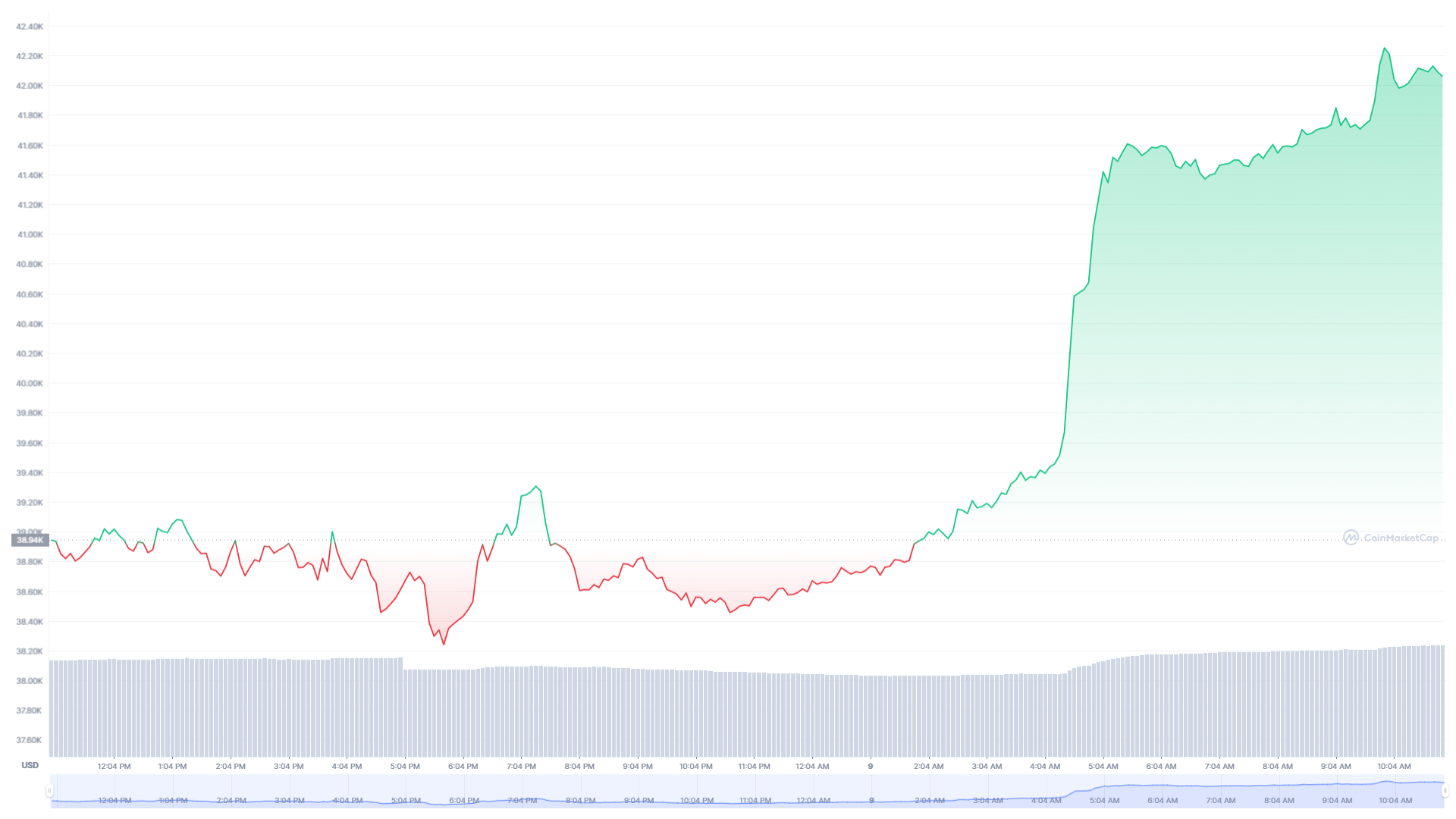 Der Bitcoin Kurs reagierte jedoch positiv auf den Kommentar von Janet Yellen vom 8. März. Der Bitcoin Preis ist innerhalb von wenigen Stunden von rund 38.000 USD auf 42.000 USD angestiegen (rund 10%).
