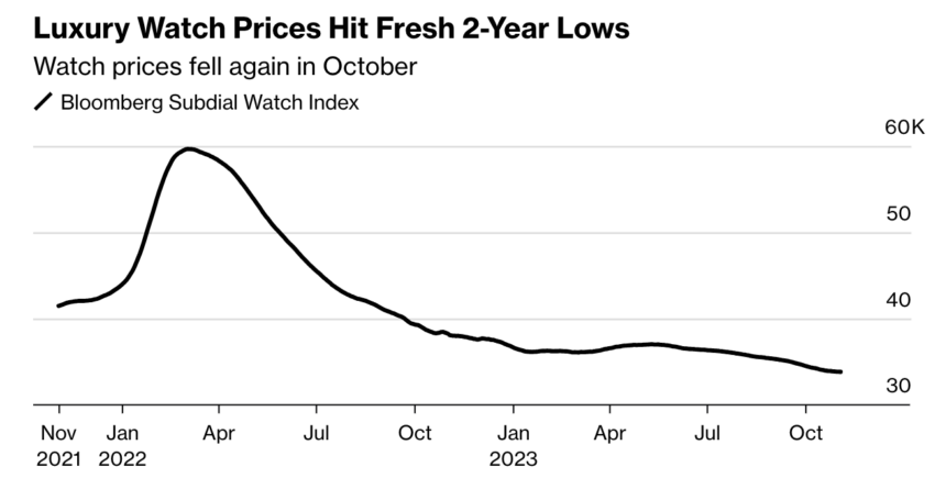 Nachdem die Nachfrage nach Uhren von Rolex, Patek Philippe und Audemars Piguet während der Pandemie gestiegen war, sanken die Preise. Hohe Zinsen und unsichere Wachstumsaussichten für die US-Wirtschaft dämpften den Enthusiasmus.